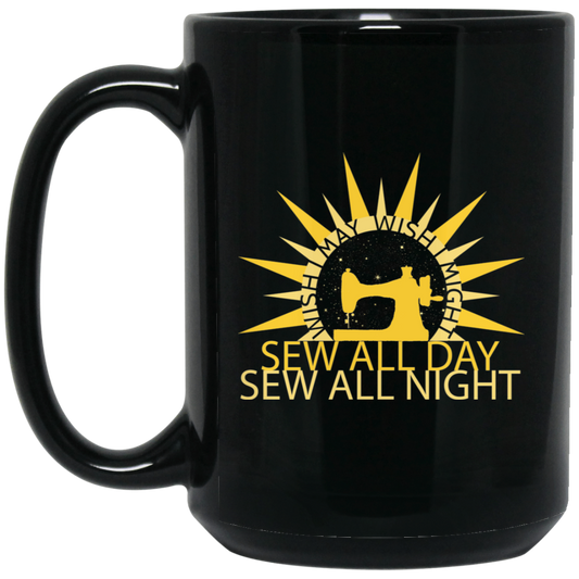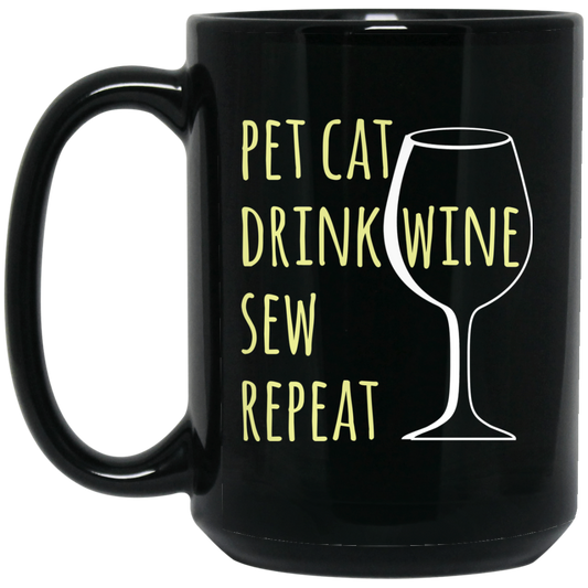 Pet Cat-Drink Wine-Sew Black Ceramic Mugs