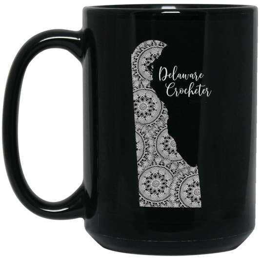 Delaware Crocheter Black Mugs