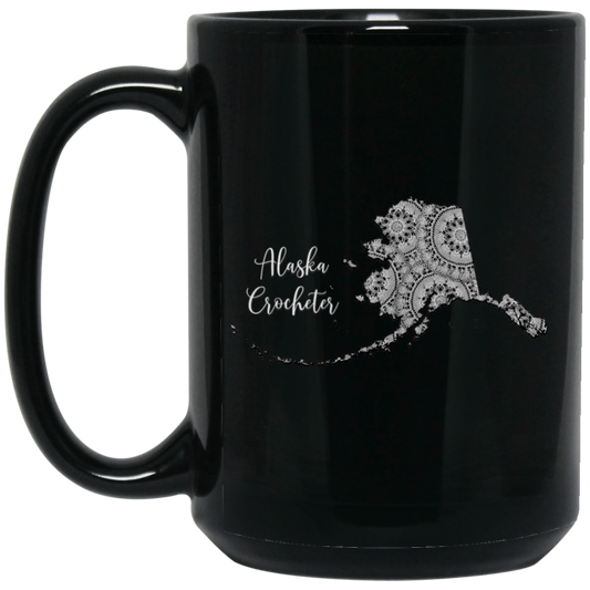 Alaska Crocheter Black Mugs