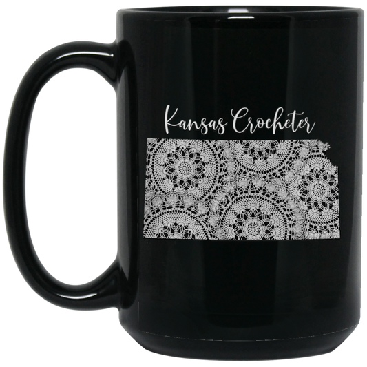 Kansas Crocheter Black Mugs