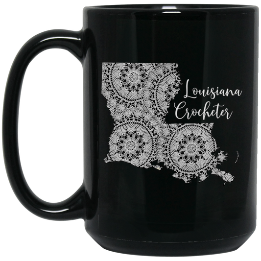 Louisiana Crocheter Black Mugs