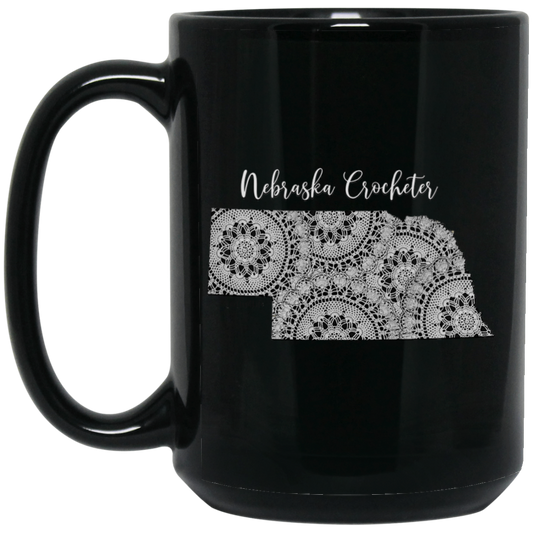 Nebraska Crocheter Black Mugs