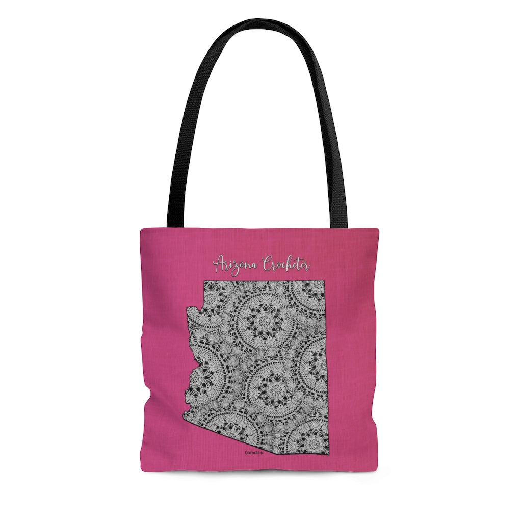 Any Crocheter from Arizona will love these tote bags! Perfect for shopping for more yarn or carrying your current crochet project! Makes a wonderful gift for any crocheter in your life.