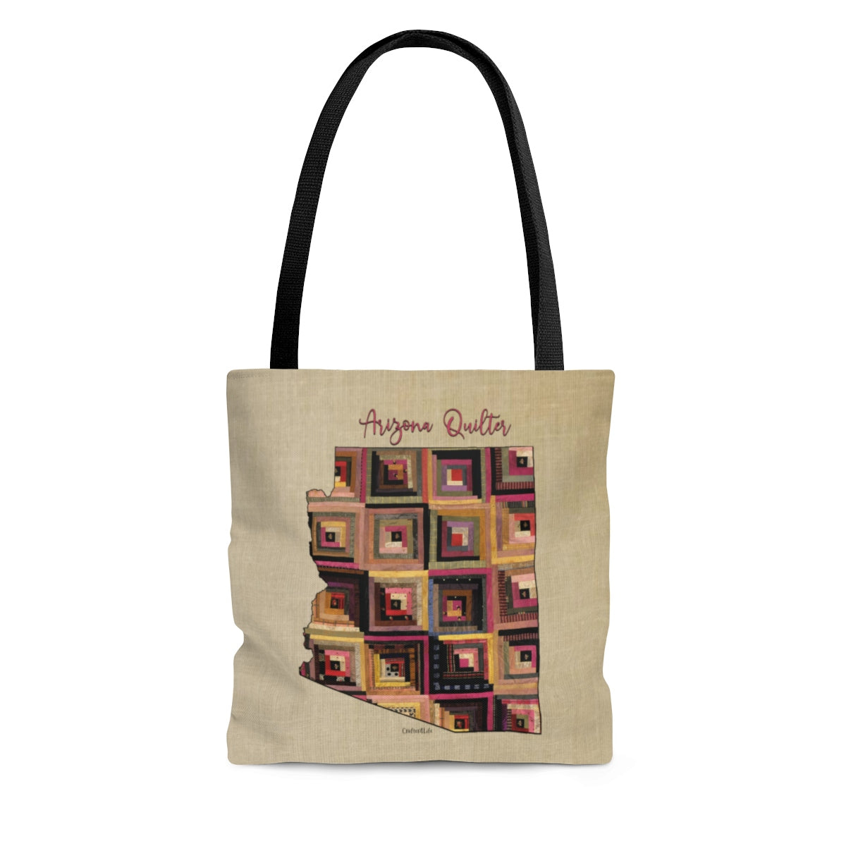 Love Quilting? Any quilter from Arizona will love these tote bags! Perfect for shopping or projects, or to take to a quilting retreat! Makes a wonderful gift. Comes in 3 sizes for Small, Medium and Large Quilting projects.