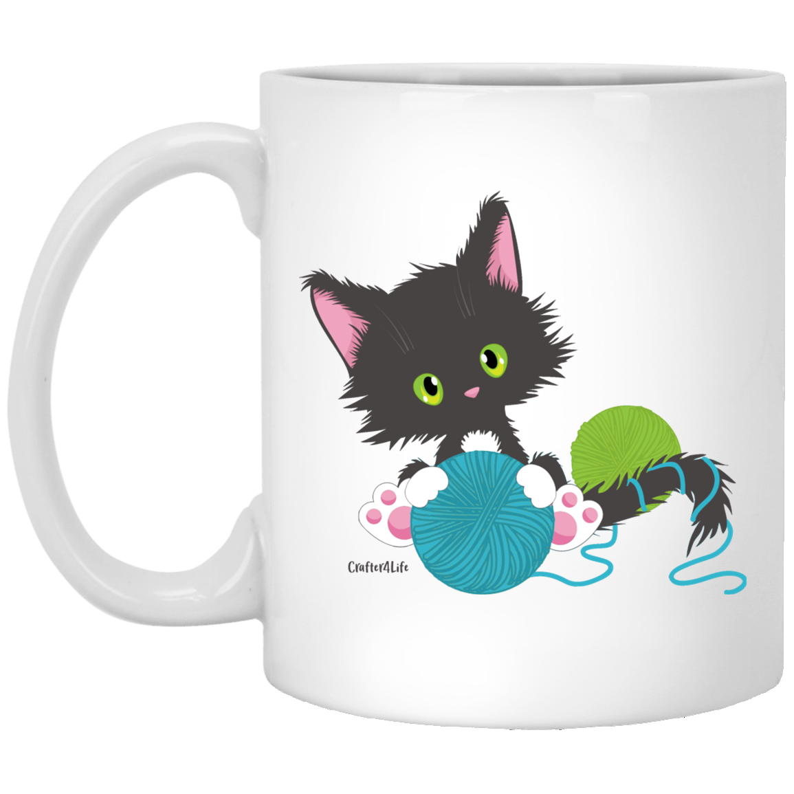 Grey Tuxedo Kitty Holding Ball of Yarn Mugs