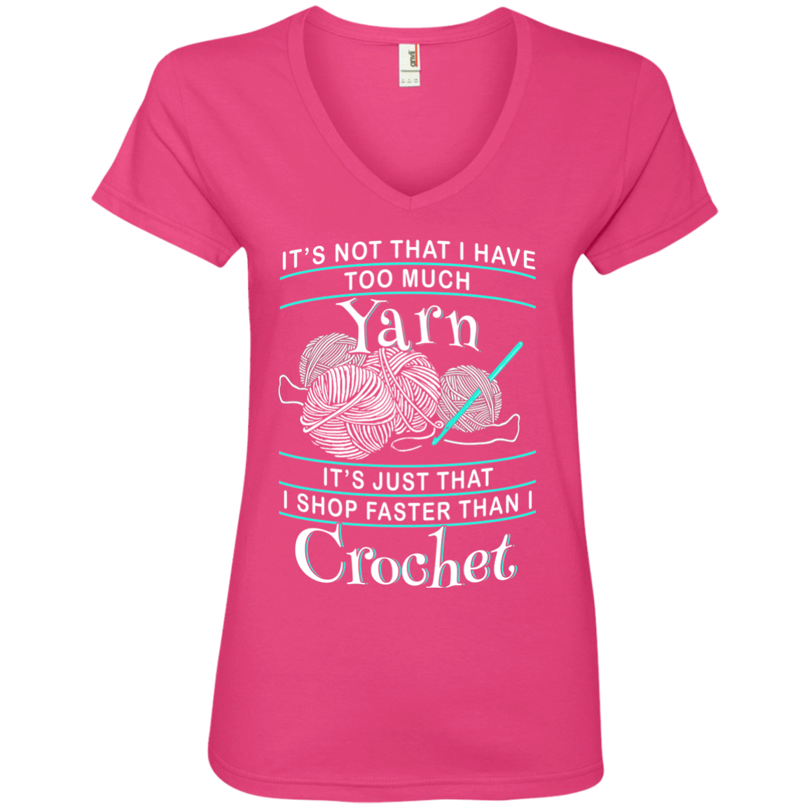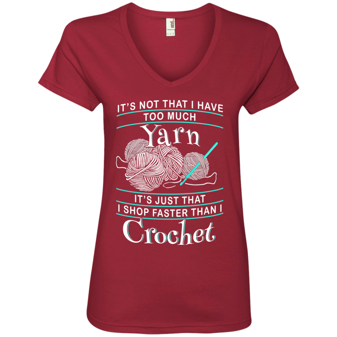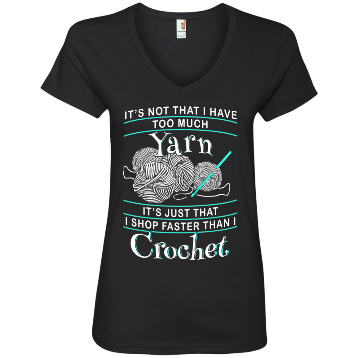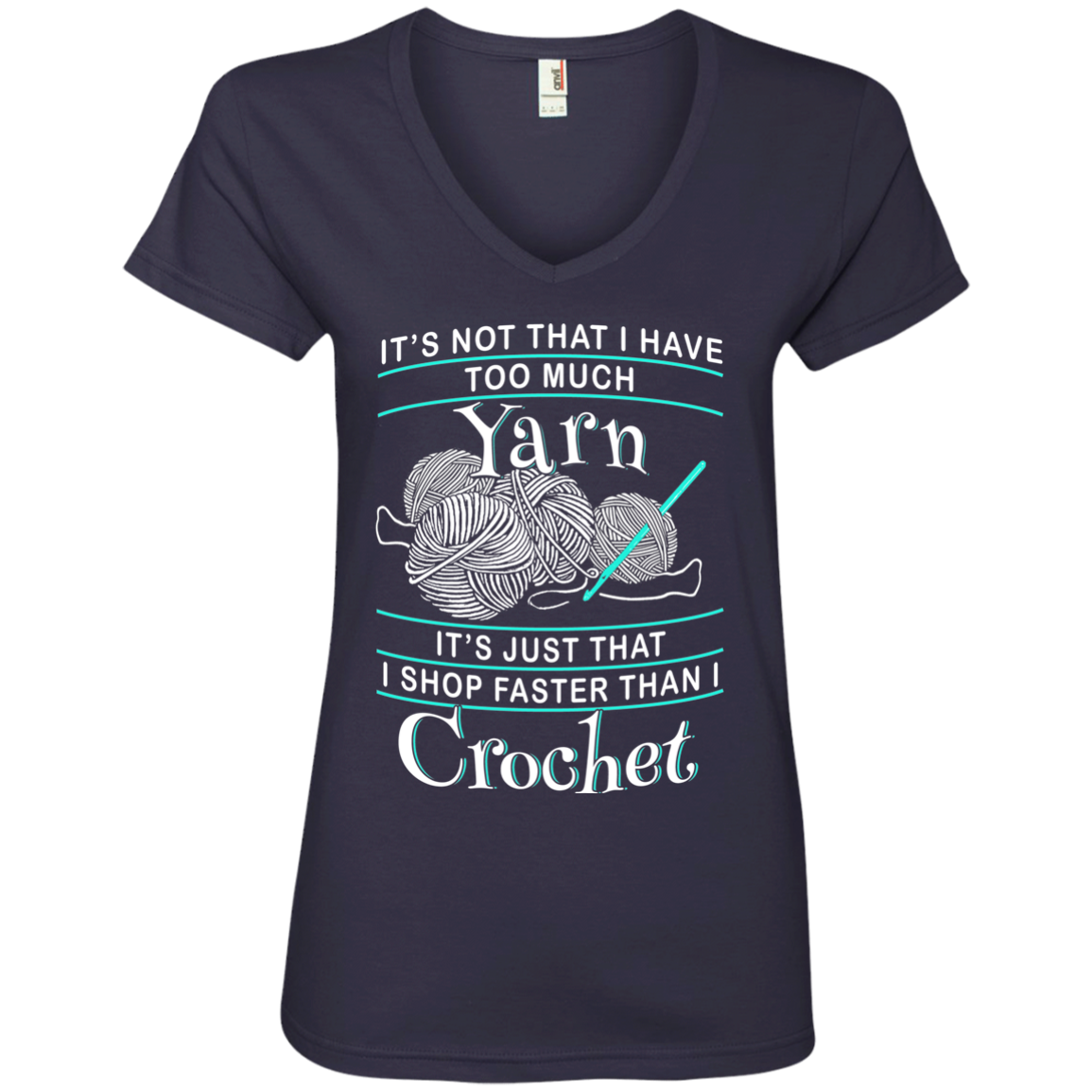 I Shop Faster than I Crochet Ladies V-Neck T-Shirt