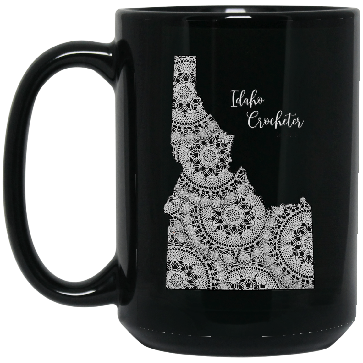 Featuring a vintage doily pattern design in the shape of the state of Idaho, this mug also makes a great gift for your crocheting family and friends.