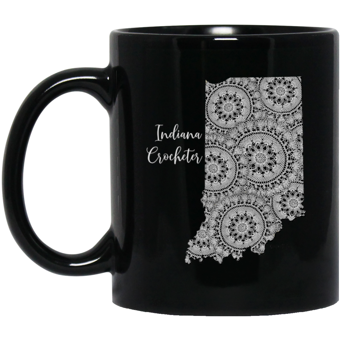 Featuring a vintage doily pattern design in the shape of the state of Indiana, this mug also makes a great gift for your crocheting family and friends.