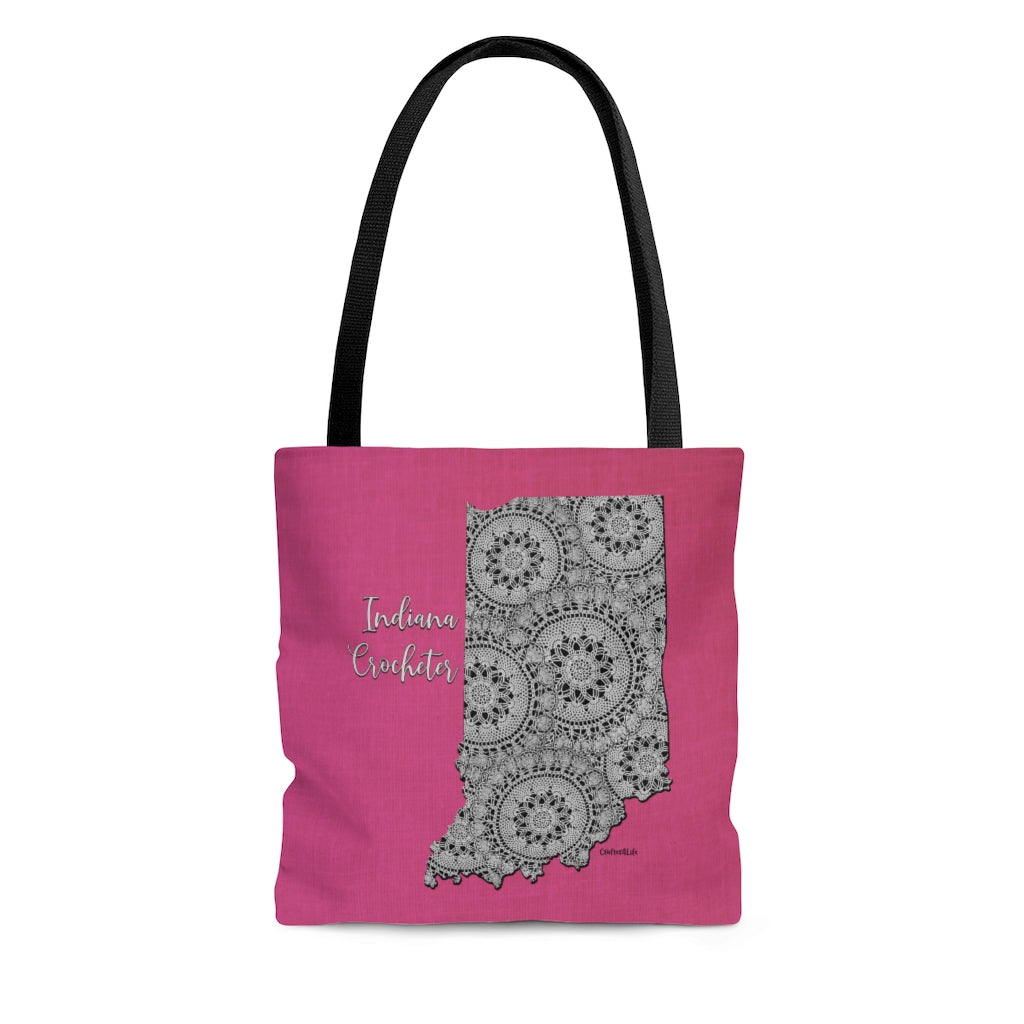 Any Crocheter from Indiana will love these tote bags! Perfect for shopping for more yarn or carrying your current crochet project! Makes a wonderful gift for any crocheter in your life.