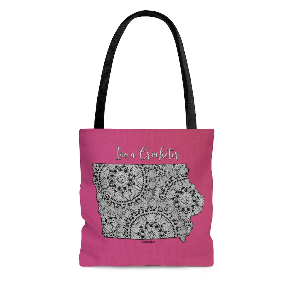 Any Crocheter from Iowa will love these tote bags! Perfect for shopping for more yarn or carrying your current crochet project! Makes a wonderful gift for any crocheter in your life.