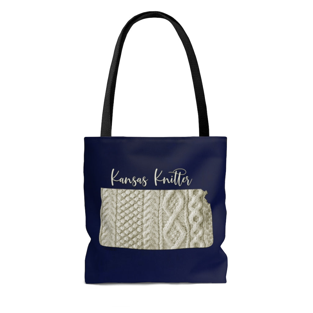 Love Knitting? Any Knitter from Kansas will love these tote bags! Perfect for shopping or projects, or to take to a knitting class or retreat. Makes a wonderful gift for any knitter in your life. Comes in 3 sizes for Small, Medium and Large Knitting projects.
