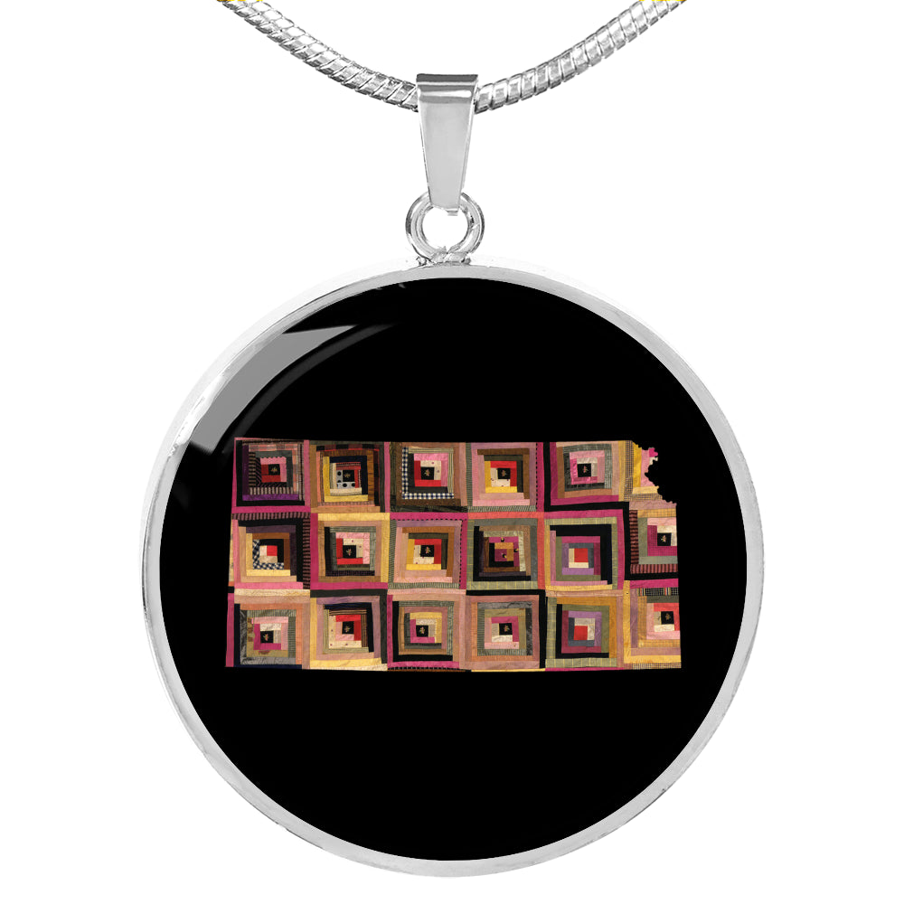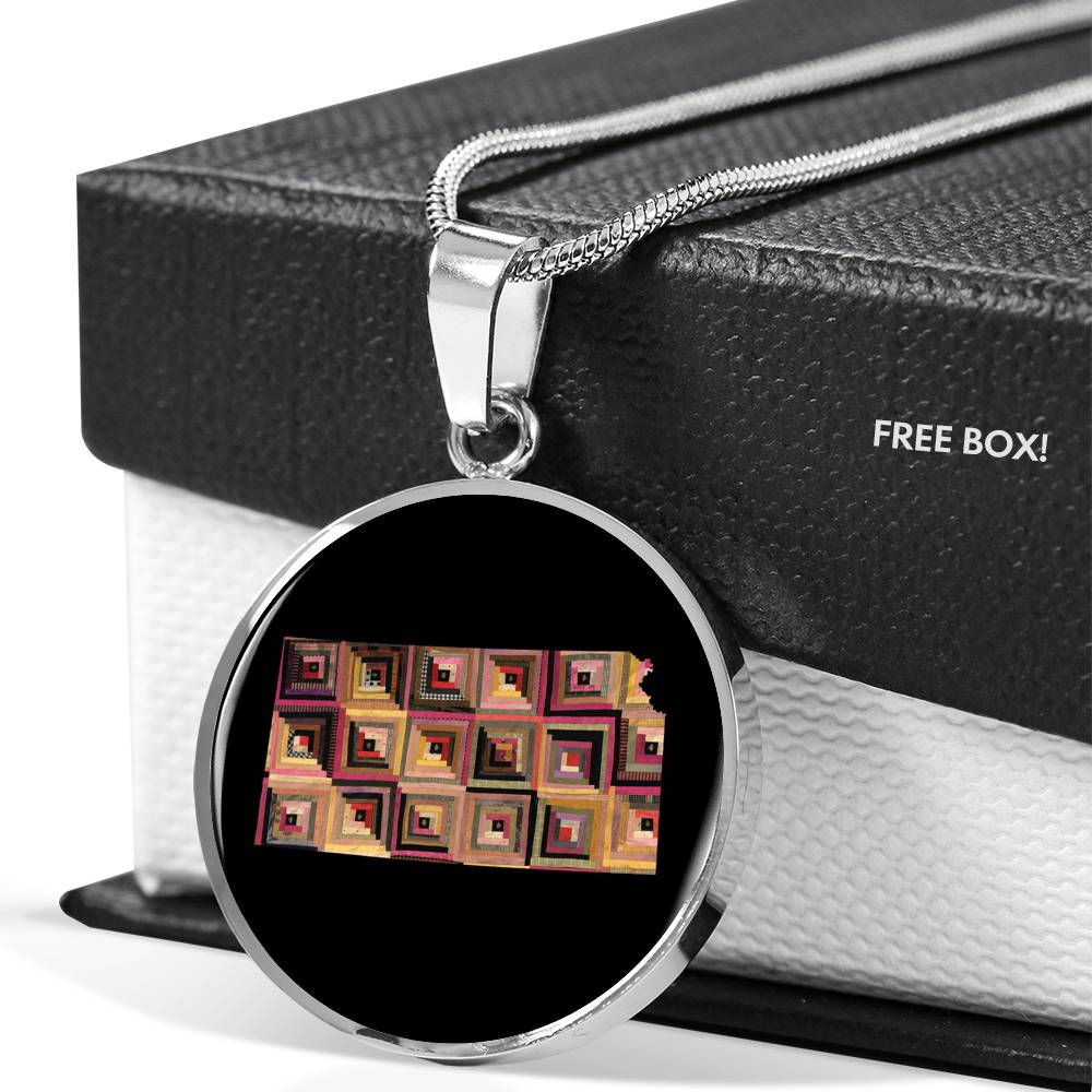 Kansas Quilter Pendant Necklace - Engravable Gift for Grandma, Mom, Wife, Sister, Aunt, Cousin, Friend