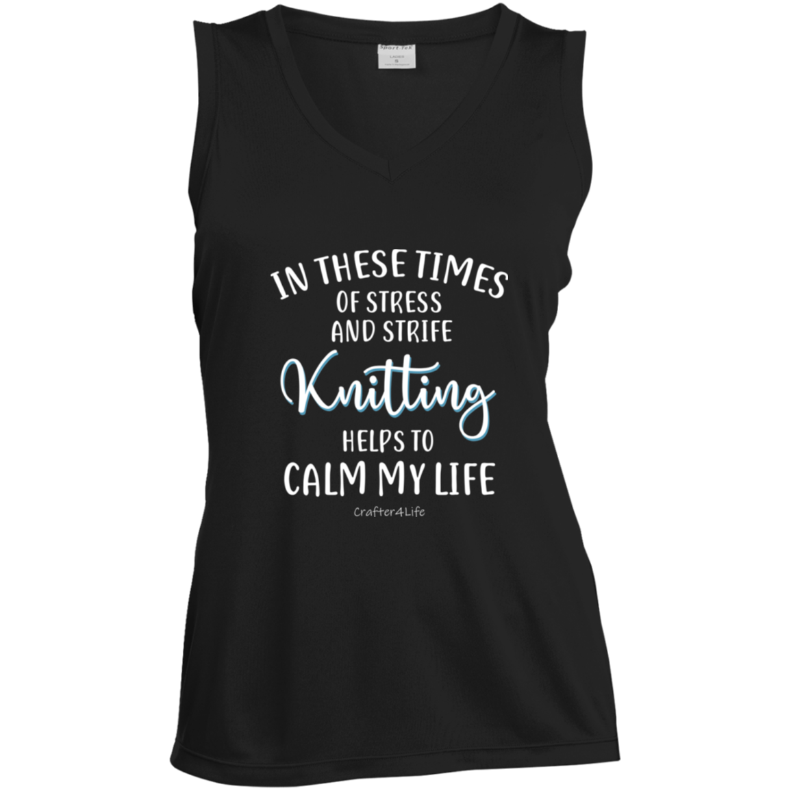Knitting Helps to Calm My Life Ladies' Sleeveless Moisture Absorbing V-Neck
