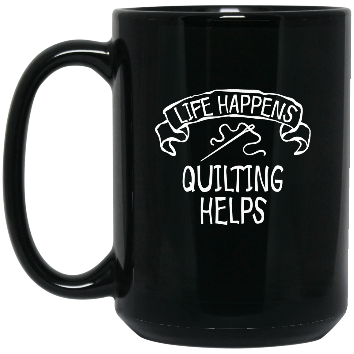 Life Happens - Quilting Helps Black Mugs