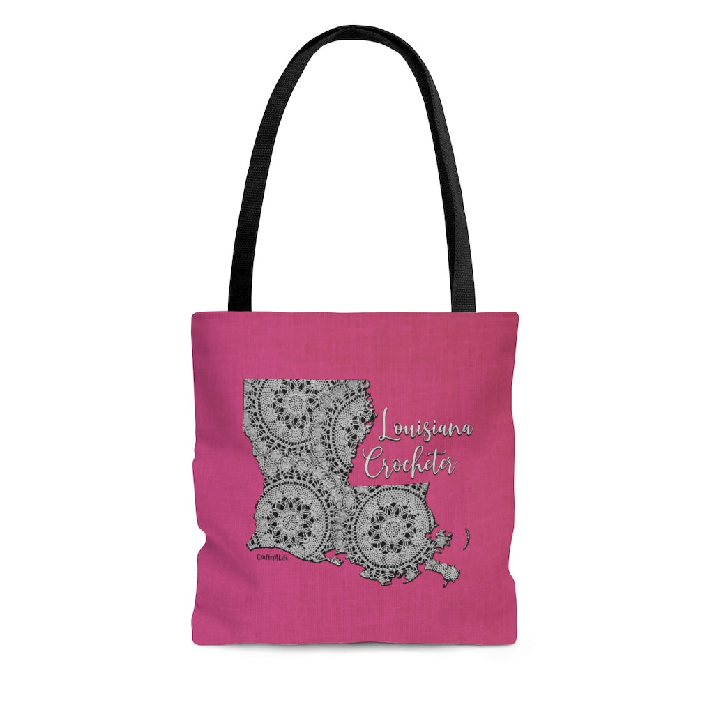 Any crocheter from Louisiana will love these tote bags! Perfect for shopping for more yarn or carrying your current crochet project! Makes a wonderful gift for any crocheter in your life.