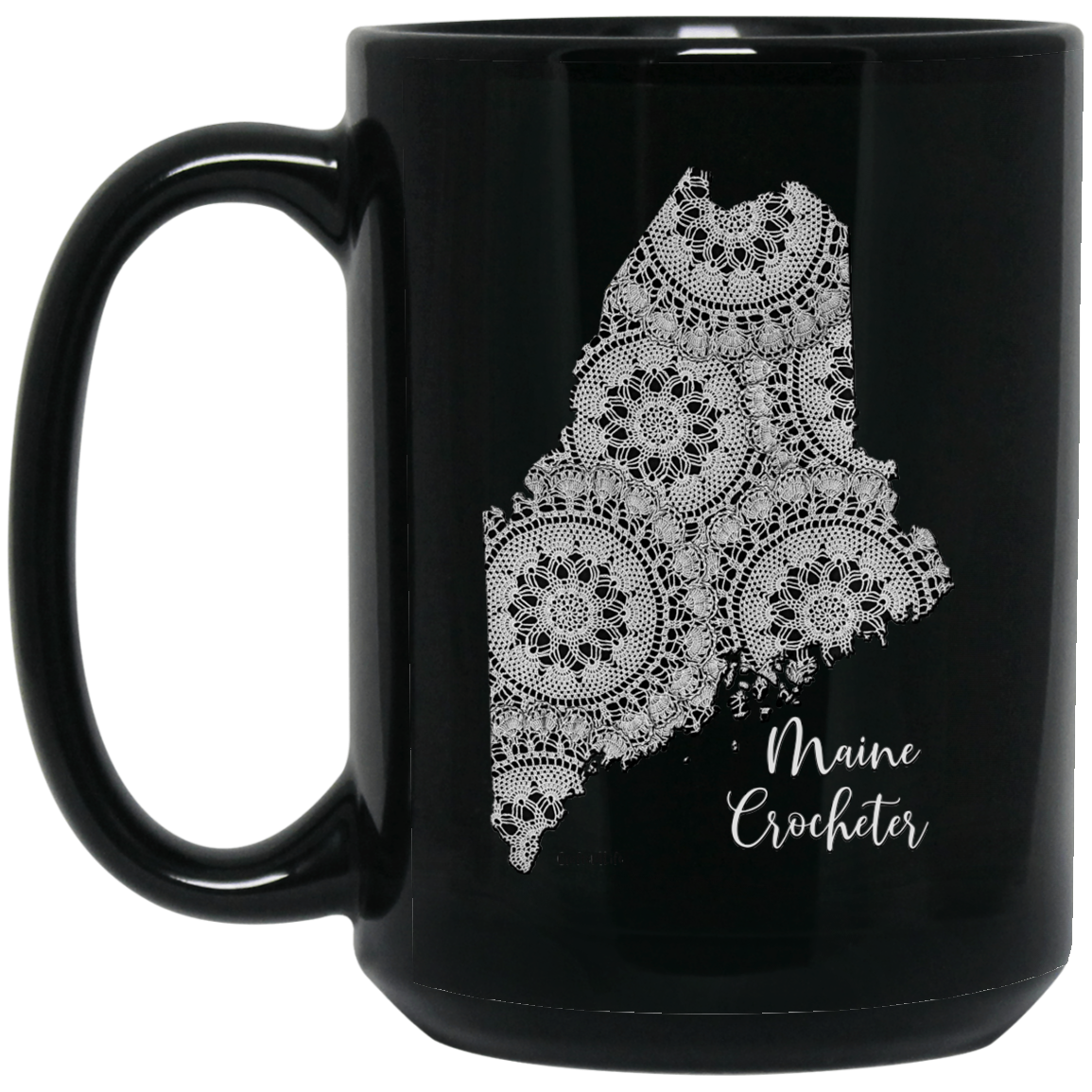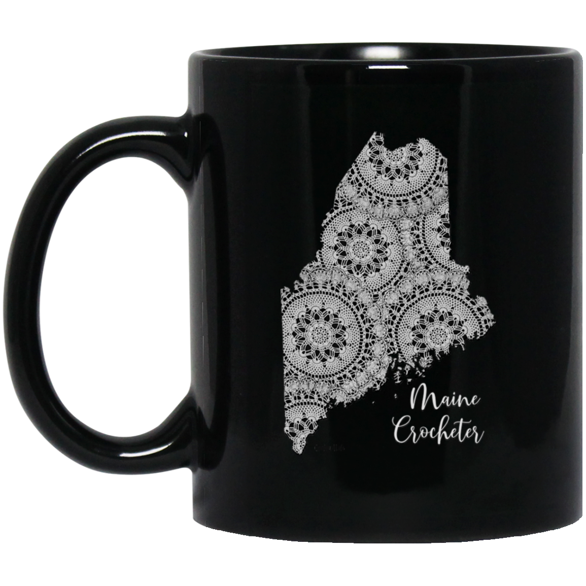 Featuring a vintage doily pattern design in the shape of the state of Maine, this mug also makes a great gift for your crocheting family and friends.