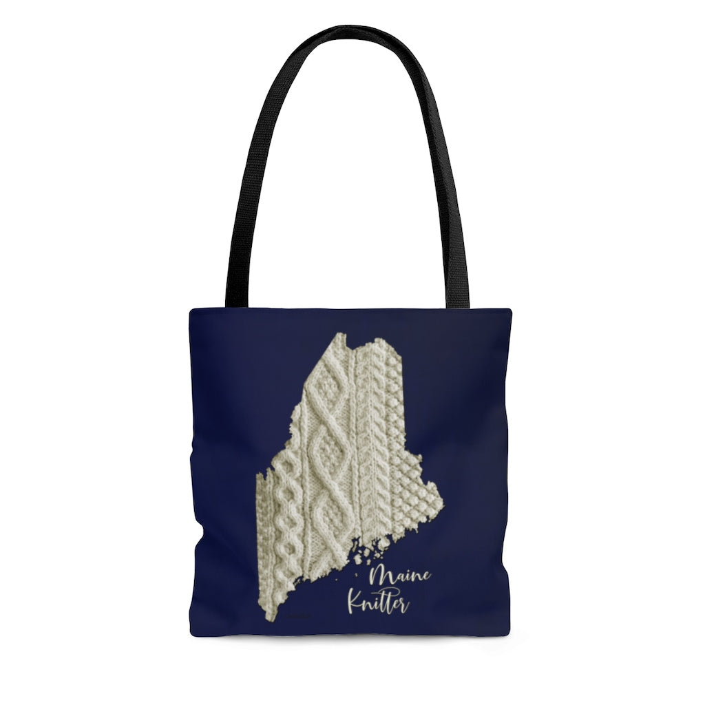Love Knitting? Any Knitter from Maine will love these tote bags! Perfect for shopping or projects, or to take to a knitting class or retreat. Makes a wonderful gift for any knitter in your life. Comes in 3 sizes for Small, Medium and Large Knitting projects.