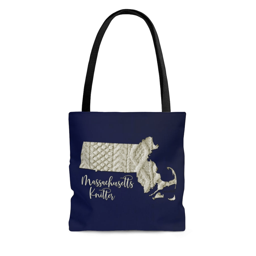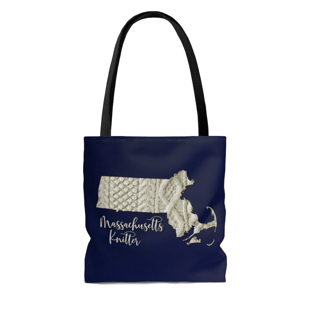 Love Knitting? Any Knitter from Massachusetts will love these tote bags! Perfect for shopping or projects, or to take to a knitting class or retreat. Makes a wonderful gift for any knitter in your life. Comes in 3 sizes for Small, Medium and Large Knitting projects.