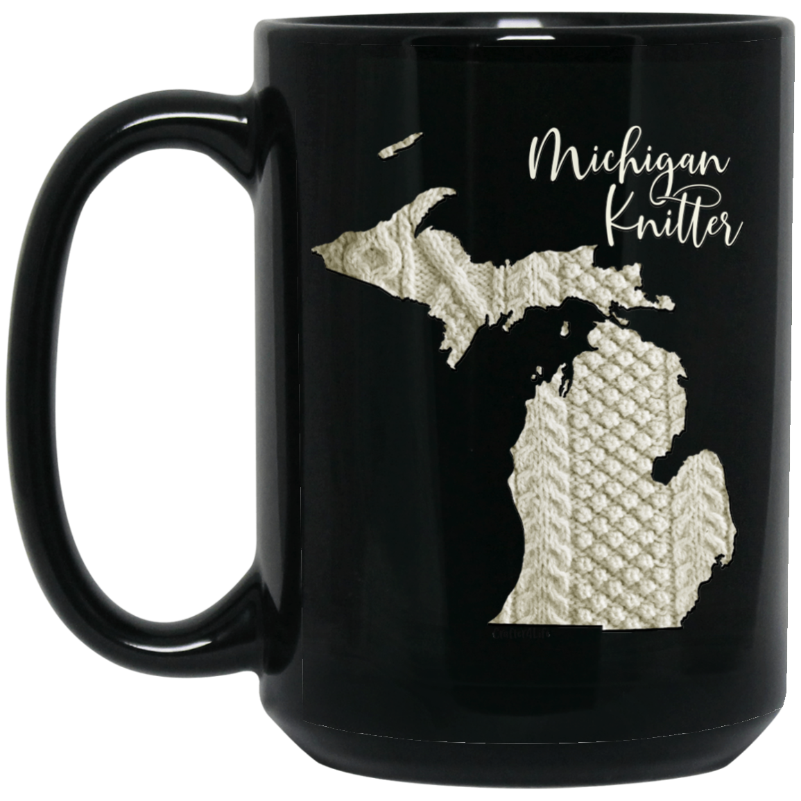 Featuring a vintage Irish knit sweater design in the shape of the state of Michigan, this mug also makes a great gift for your knitting family and friends.