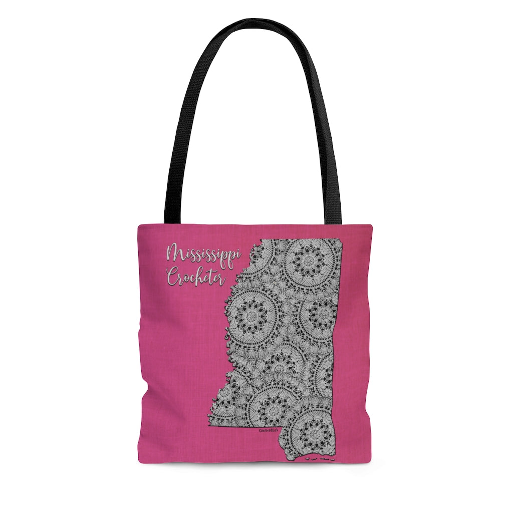 Any crocheter from Mississippi will love these tote bags! Perfect for shopping for more yarn or carrying your current crochet project! Makes a wonderful gift for any crocheter in your life.