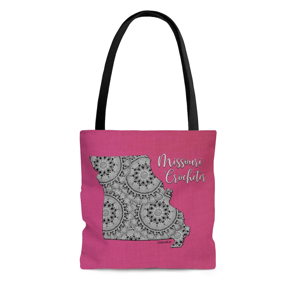 Any crocheter from Missouri will love these tote bags! Perfect for shopping for more yarn or carrying your current crochet project! Makes a wonderful gift for any crocheter in your life.