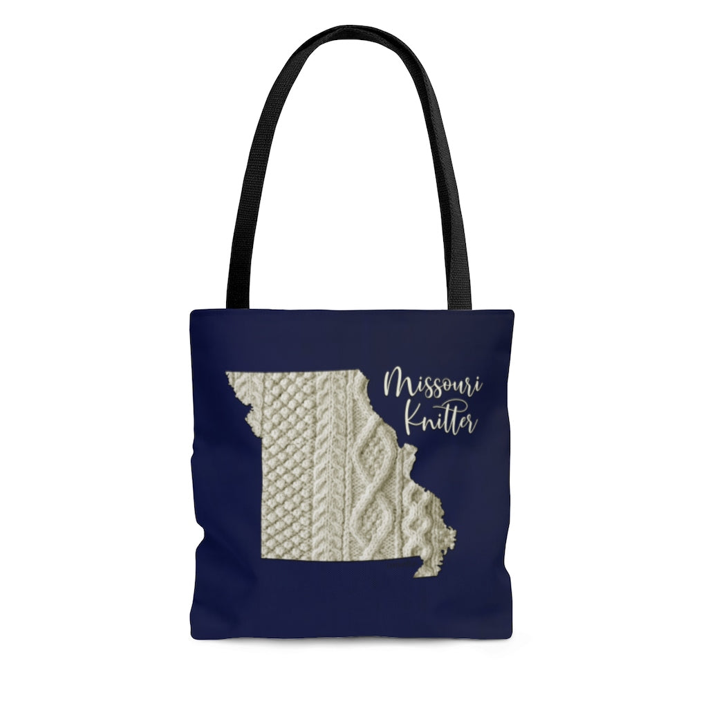 Love Knitting? Any Knitter from Missouri will love these tote bags! Perfect for shopping or projects, or to take to a knitting class or retreat. Makes a wonderful gift for any knitter in your life. Comes in 3 sizes for Small, Medium and Large Knitting projects.