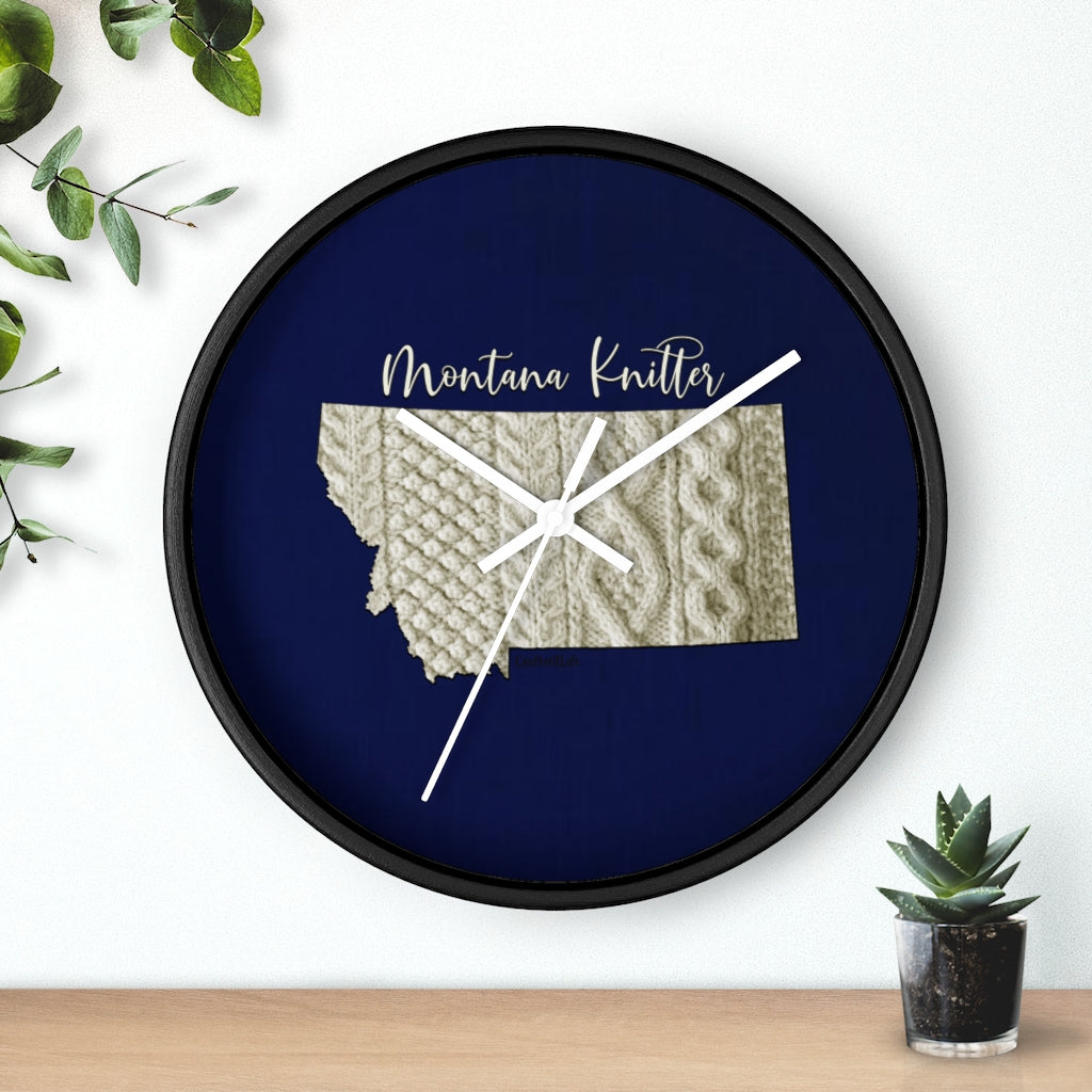 Montana Knitter Wooden Framed Wall Clock