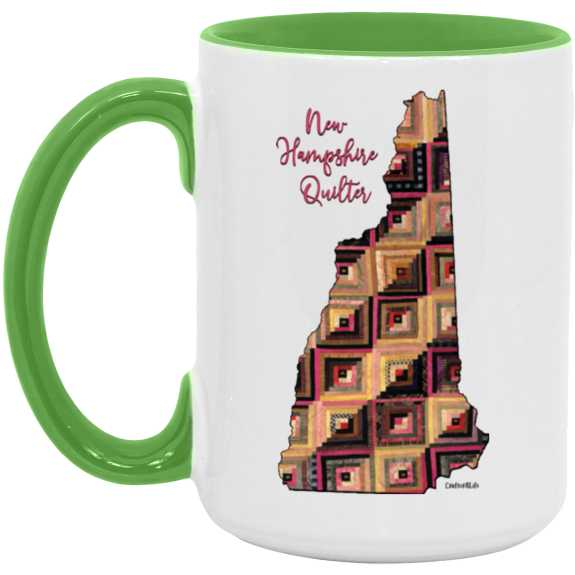 If you love quilting and New Hampshire, you'll enjoy using this mug. This high quality, fade-proof mug will bring a smile to your face every time you drink your tea, coffee or hot chocolate! A great gift for friends and family members, or just yourself.
