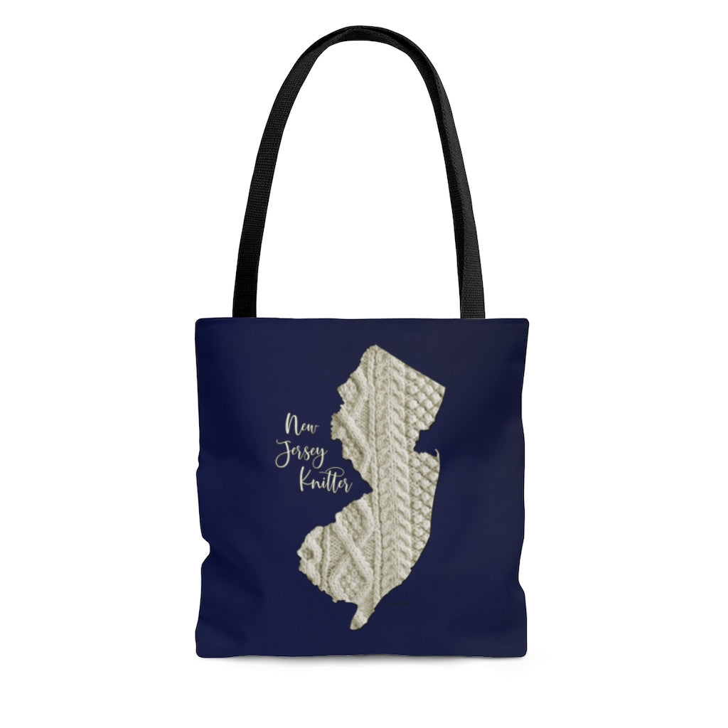 Love Knitting? Any Knitter from New Jersey will love these tote bags! Perfect for shopping or projects, or to take to a knitting class or retreat. Makes a wonderful gift for any knitter in your life. Comes in 3 sizes for Small, Medium and Large Knitting projects.