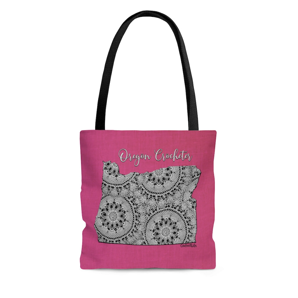 Any crocheter from Oregon will love these tote bags! Perfect for shopping for more yarn or carrying your current crochet project! Makes a wonderful gift for any crocheter in your life.