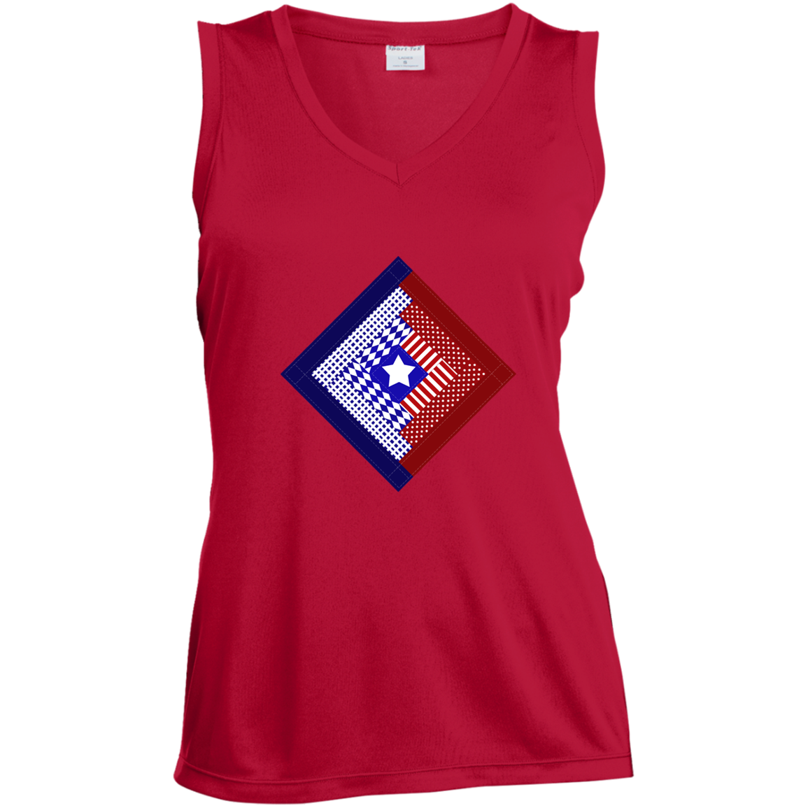 Patriotic Log Cabin Square Ladies' Sleeveless Moisture Absorbing V-Neck