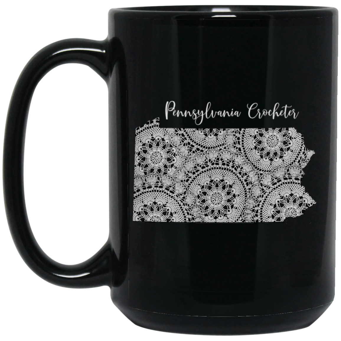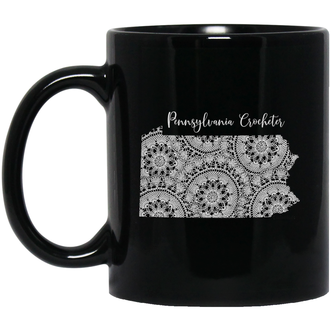 Featuring a vintage doily pattern design in the shape of the state of Pennsylvania, this mug also makes a great gift for your crocheting family and friends.