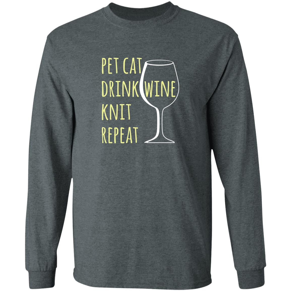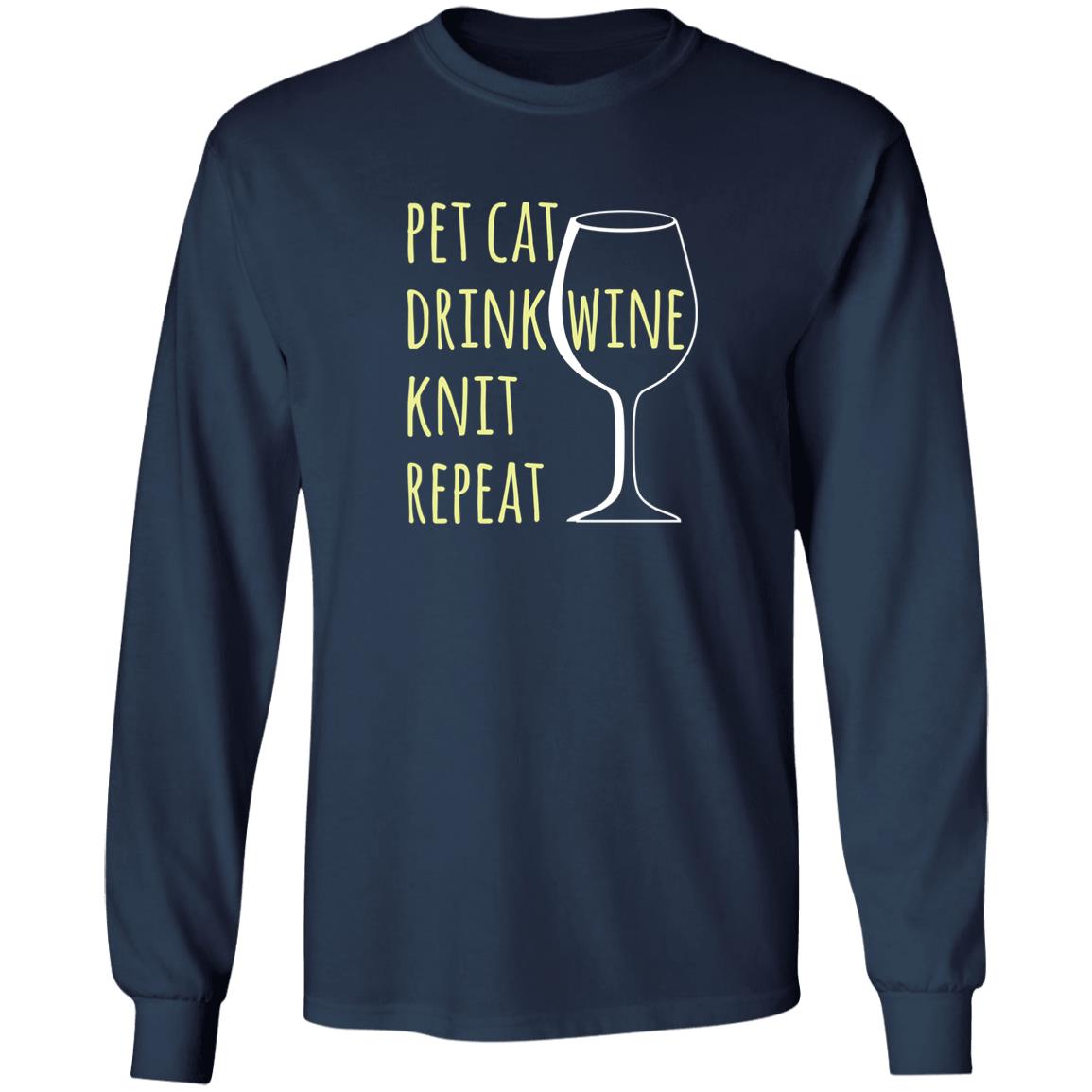 Pet Cat-Drink Wine-Knit Long Sleeve T-Shirt