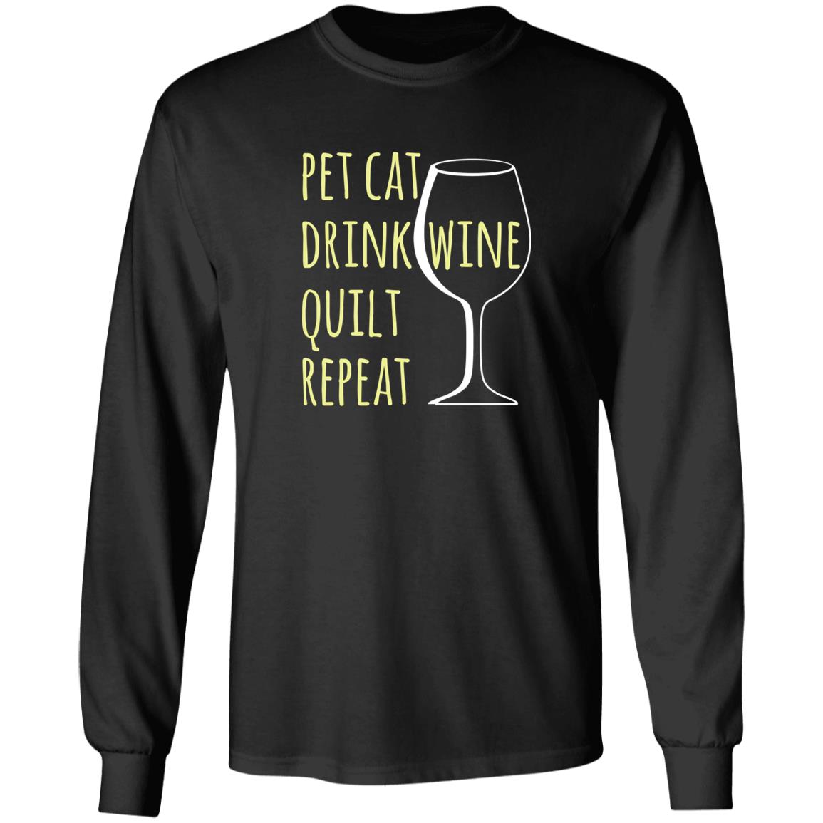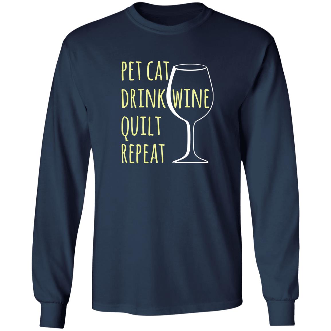 Pet Cat-Drink Wine-Quilt Long Sleeve T-Shirt