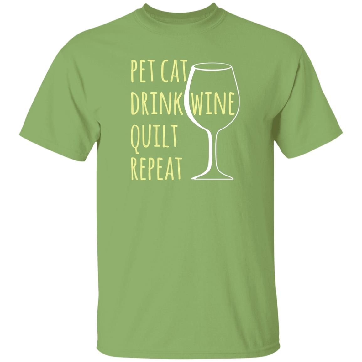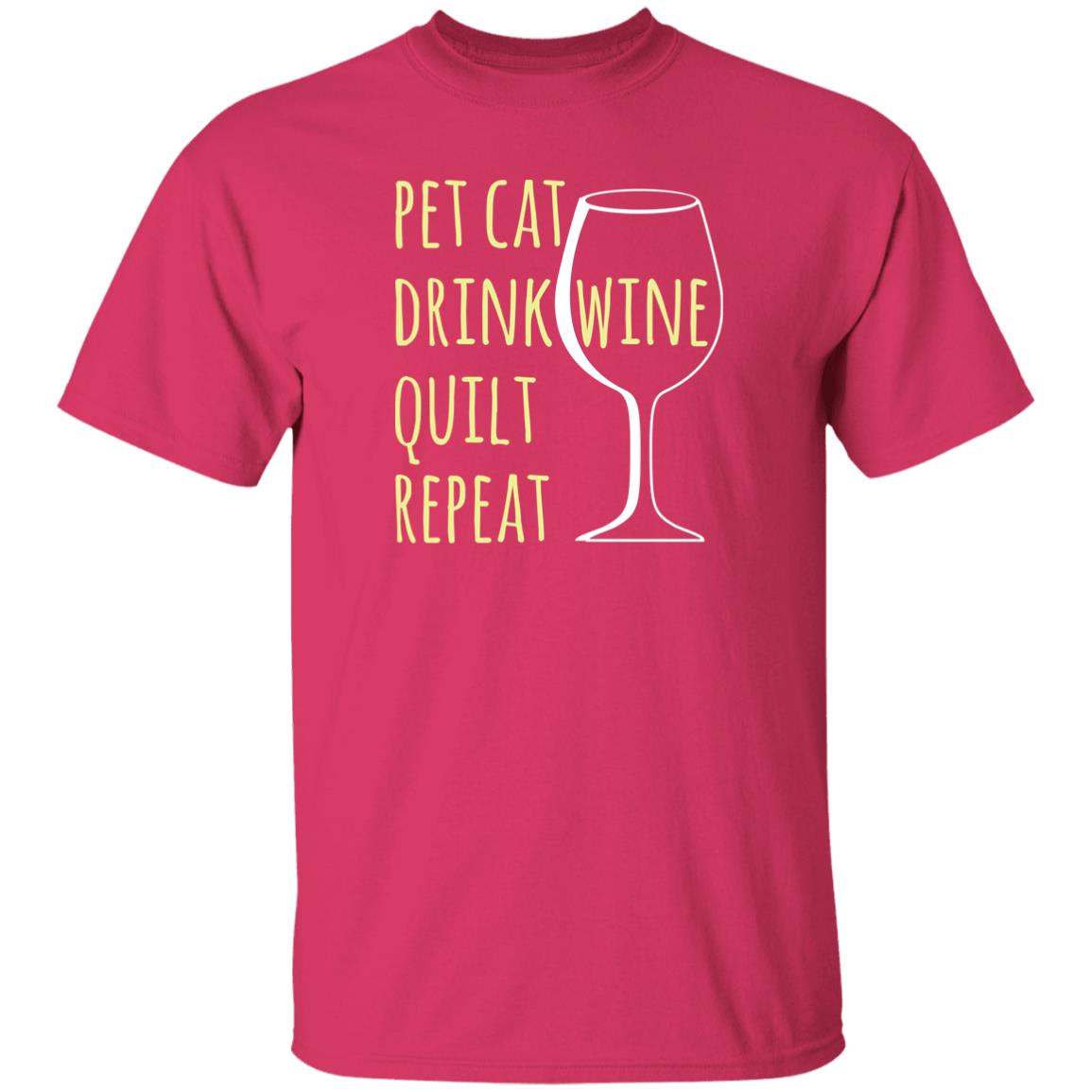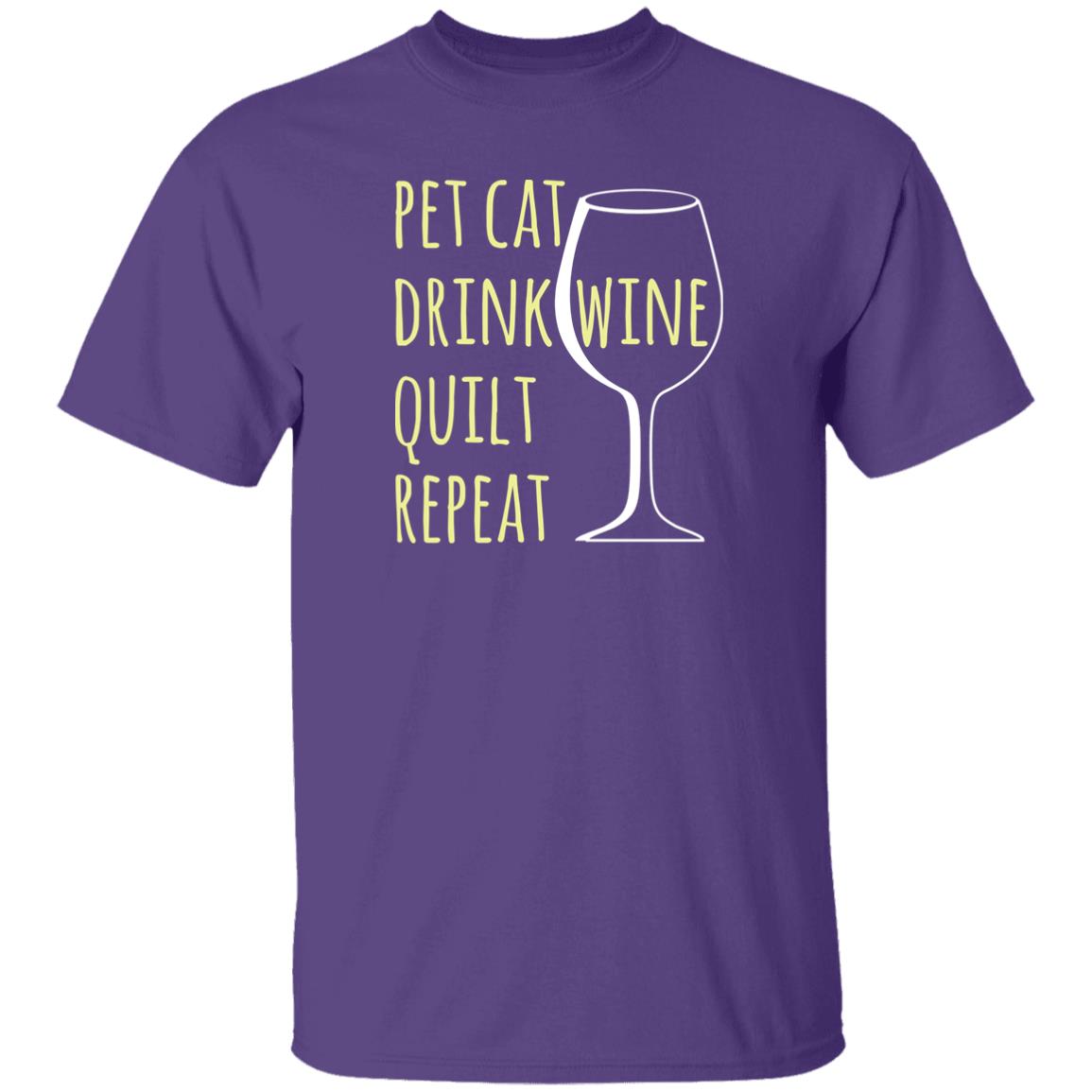 Pet Cat-Drink Wine-Quilt T-Shirt
