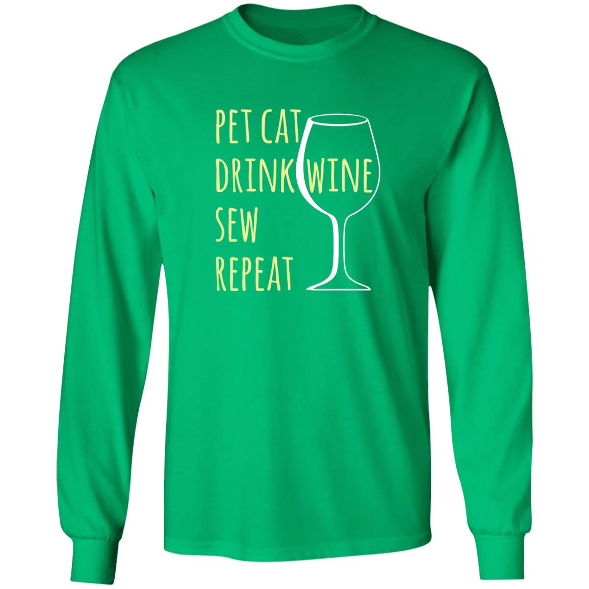 Pet Cat-Drink Wine-Sew Long Sleeve T-Shirt
