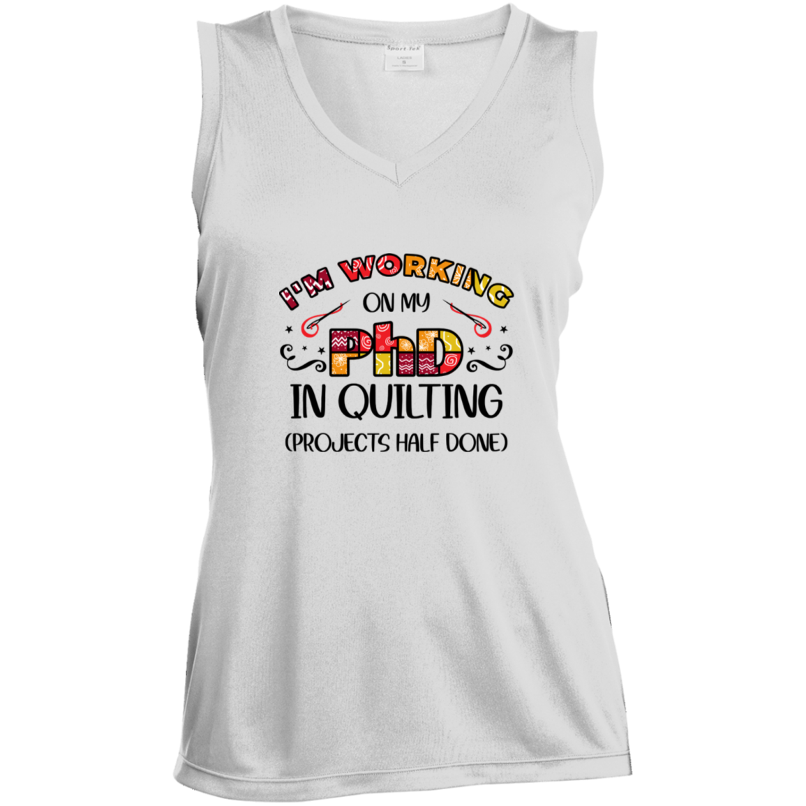 PhD in Quilting Ladies' Sleeveless Moisture Absorbing V-Neck