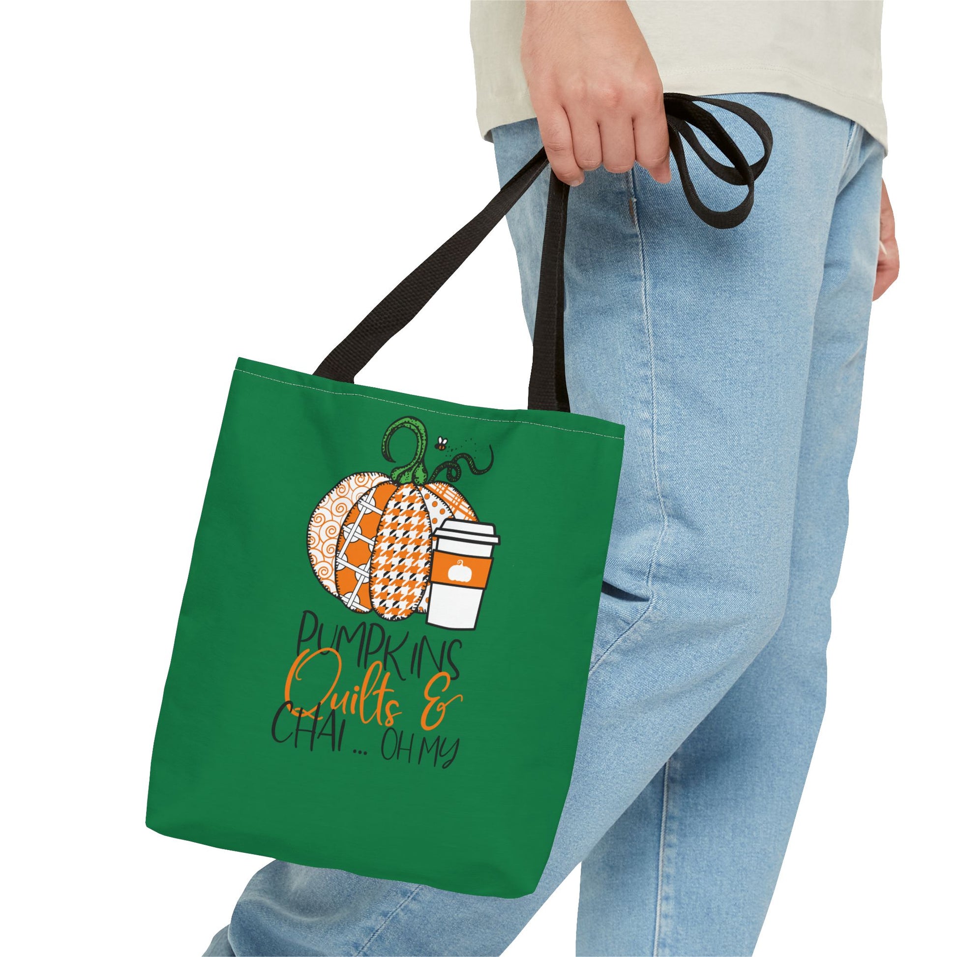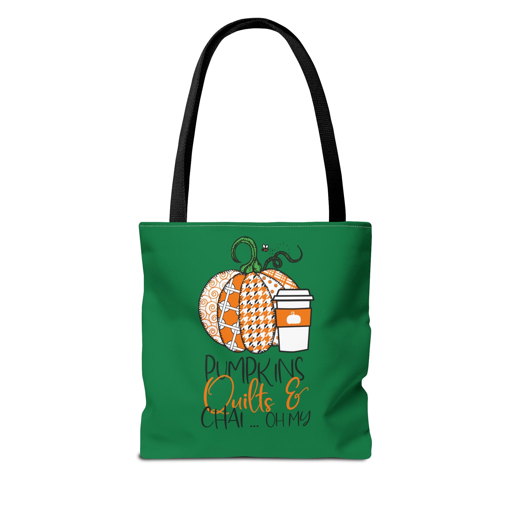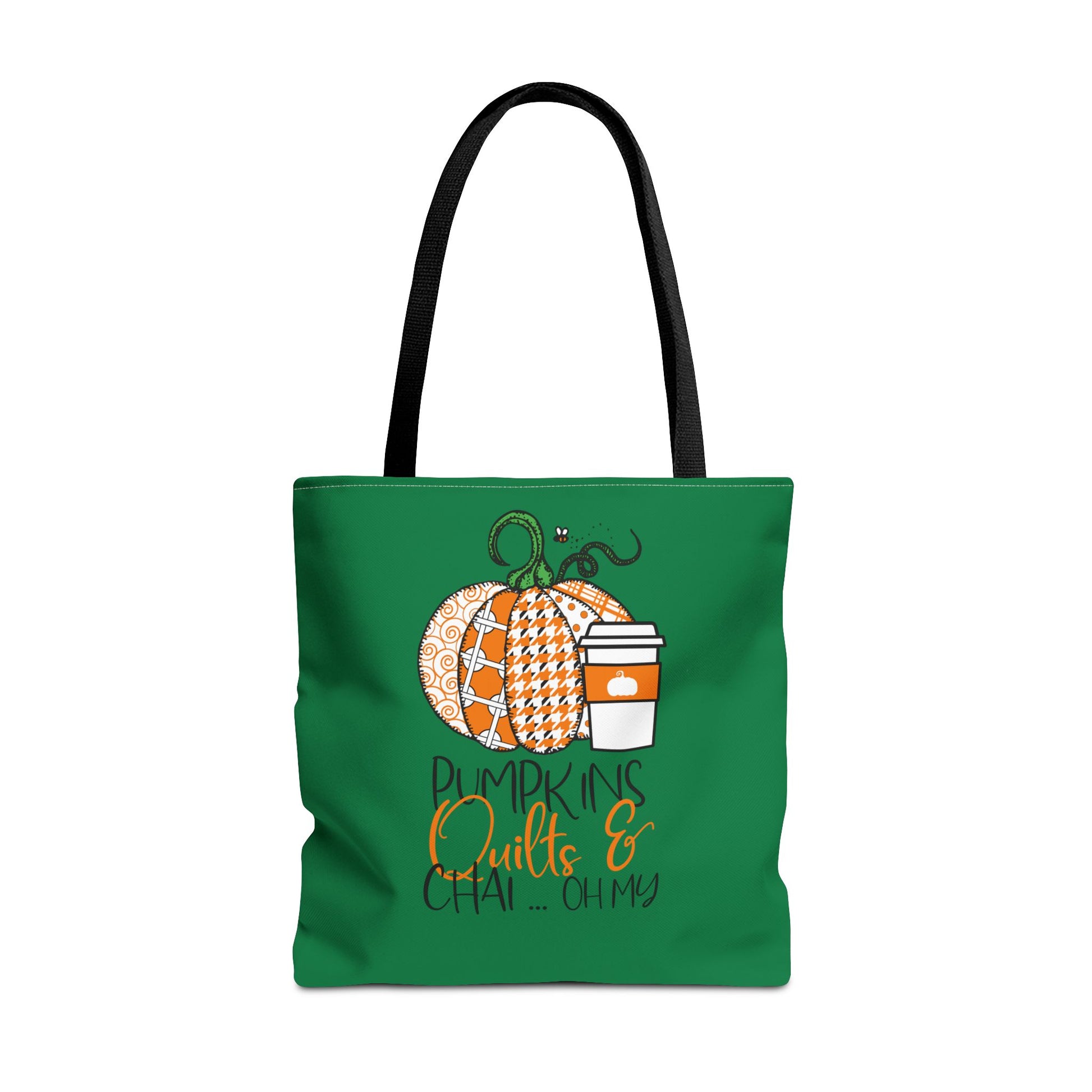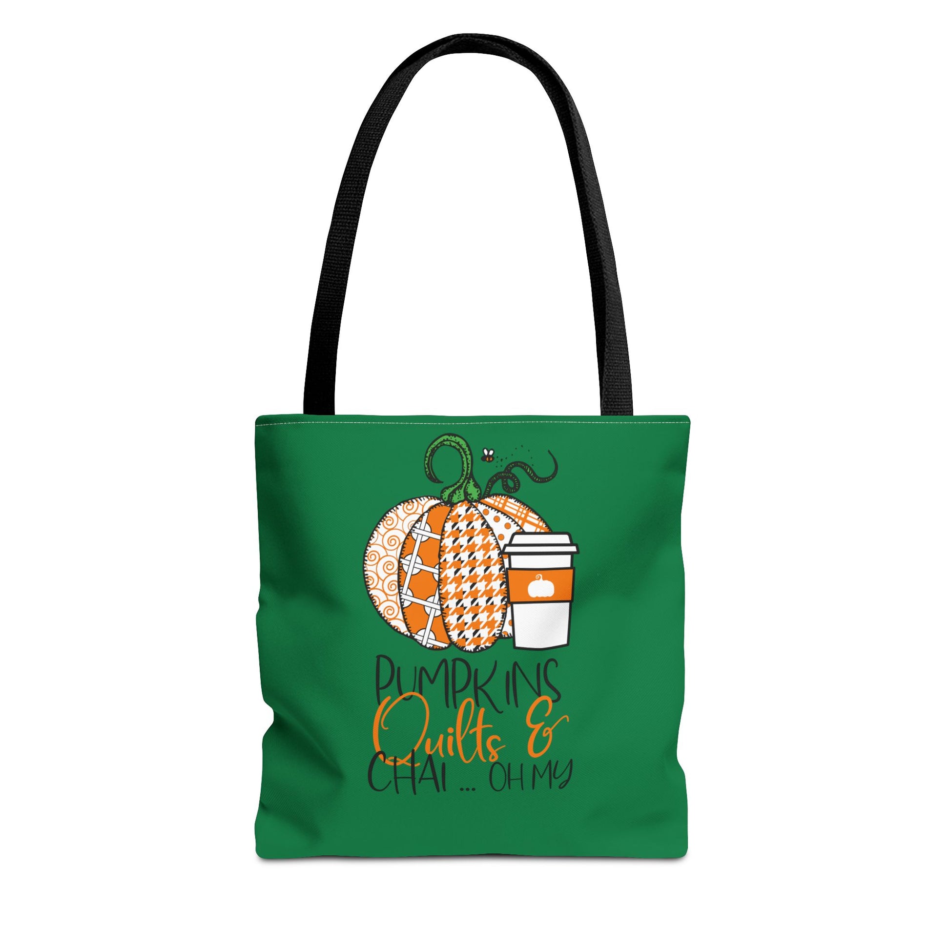 Pumpkin Spice Tote Bag, Fall Tote, Pumpkin Quilts & Chai Bag, Autumn Handbag, Eco-Friendly Market Bag