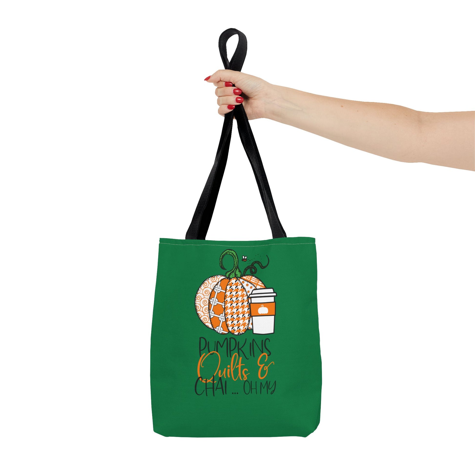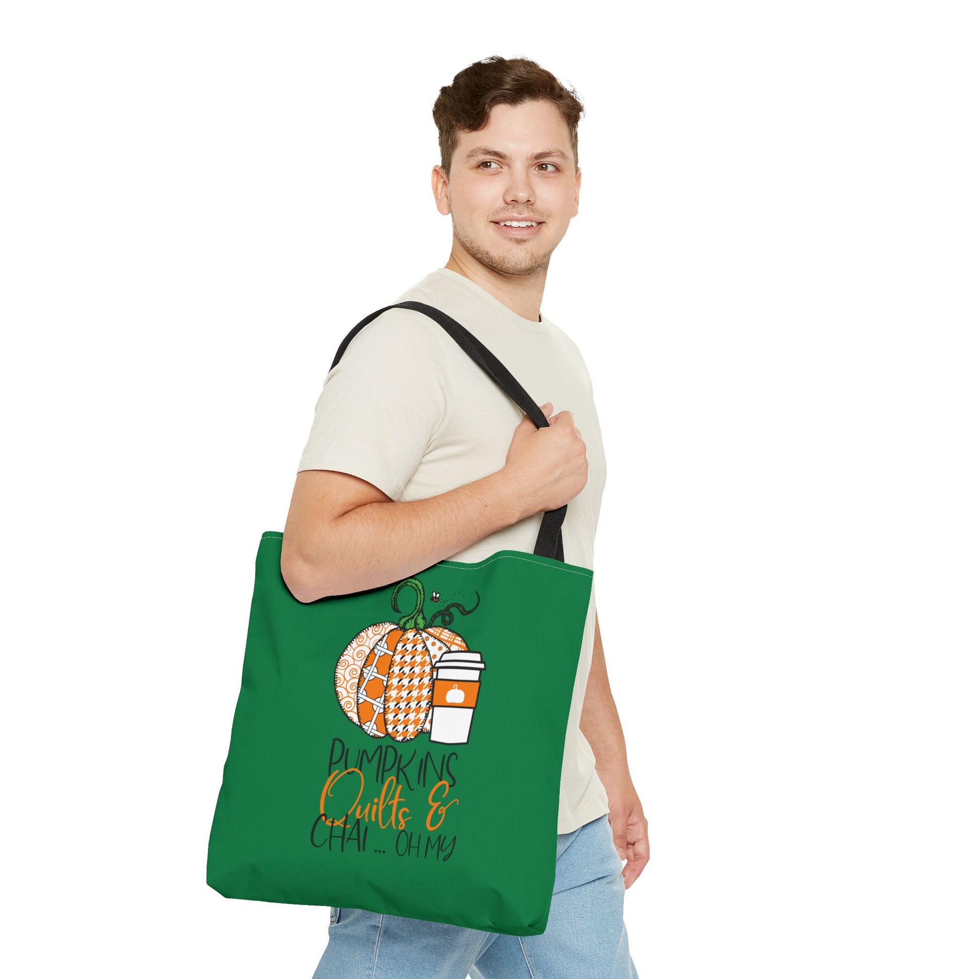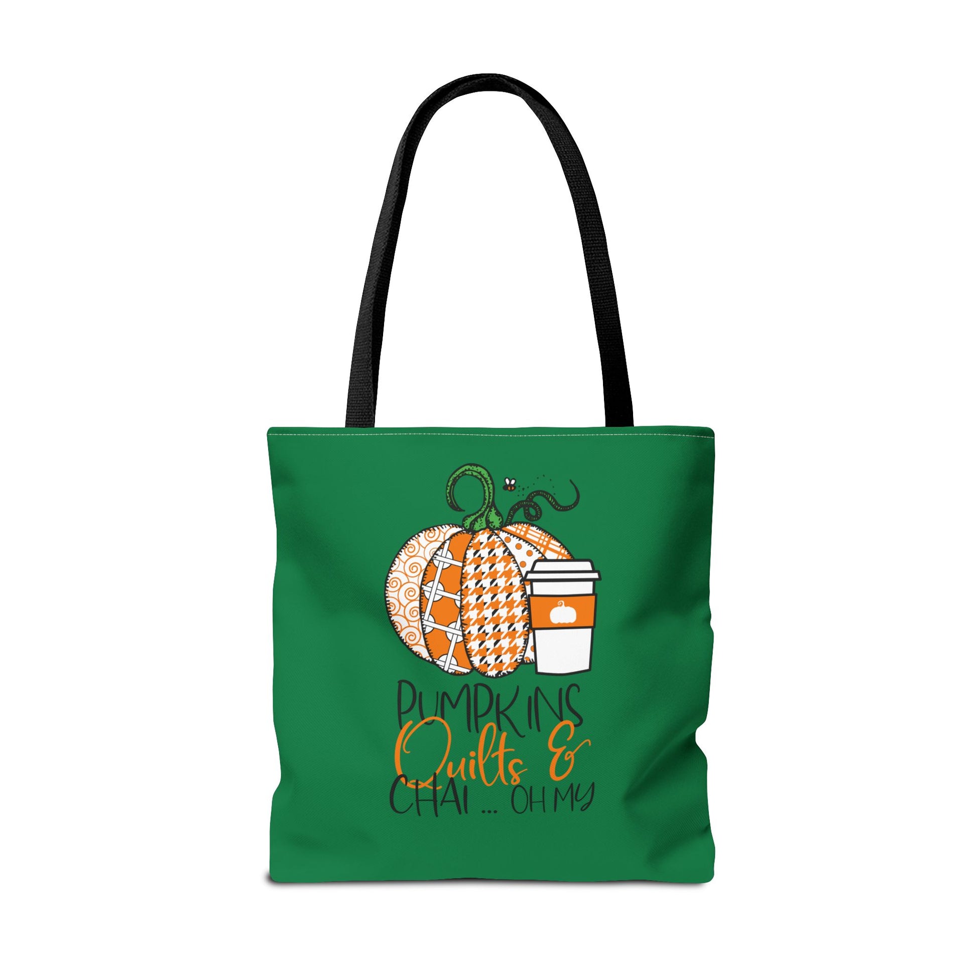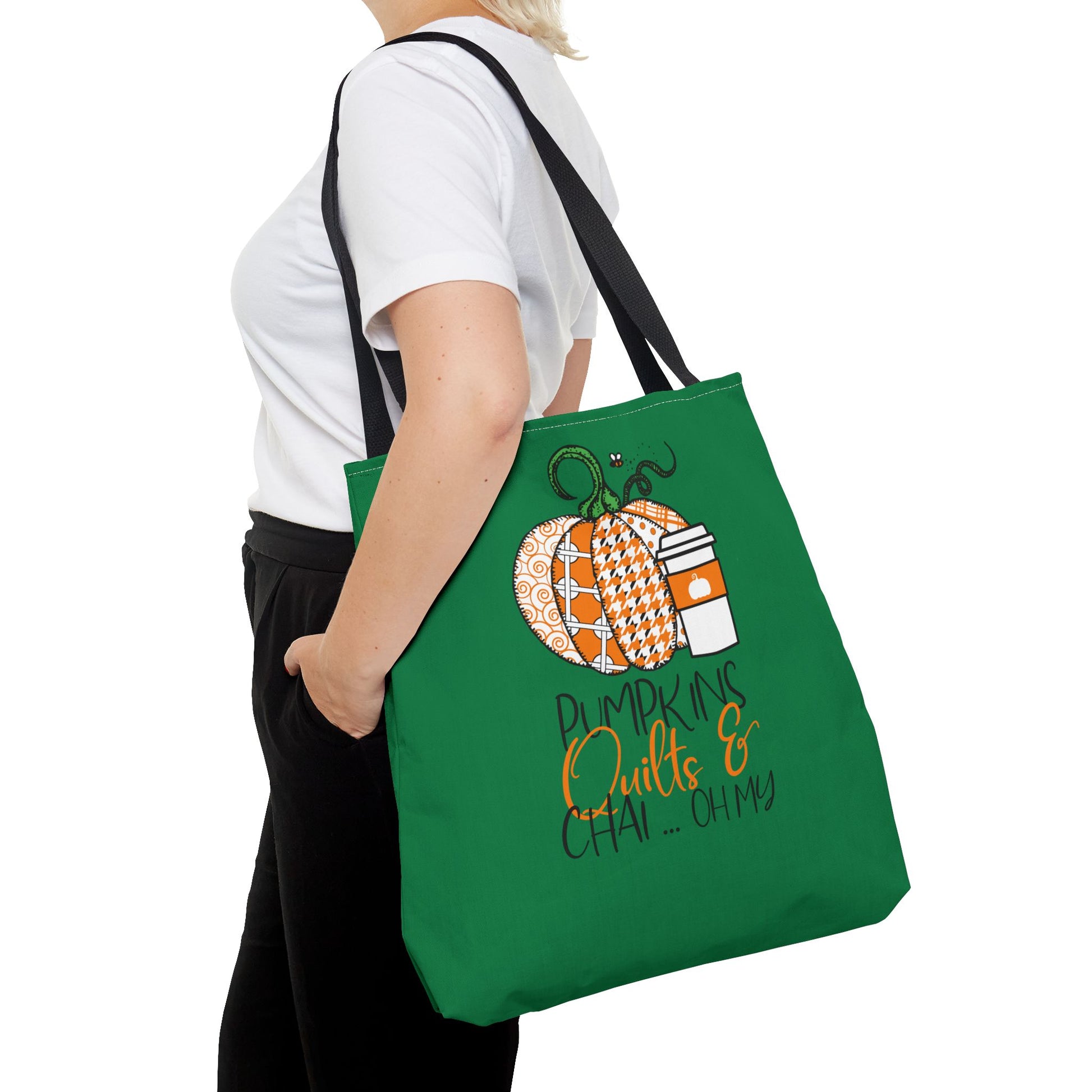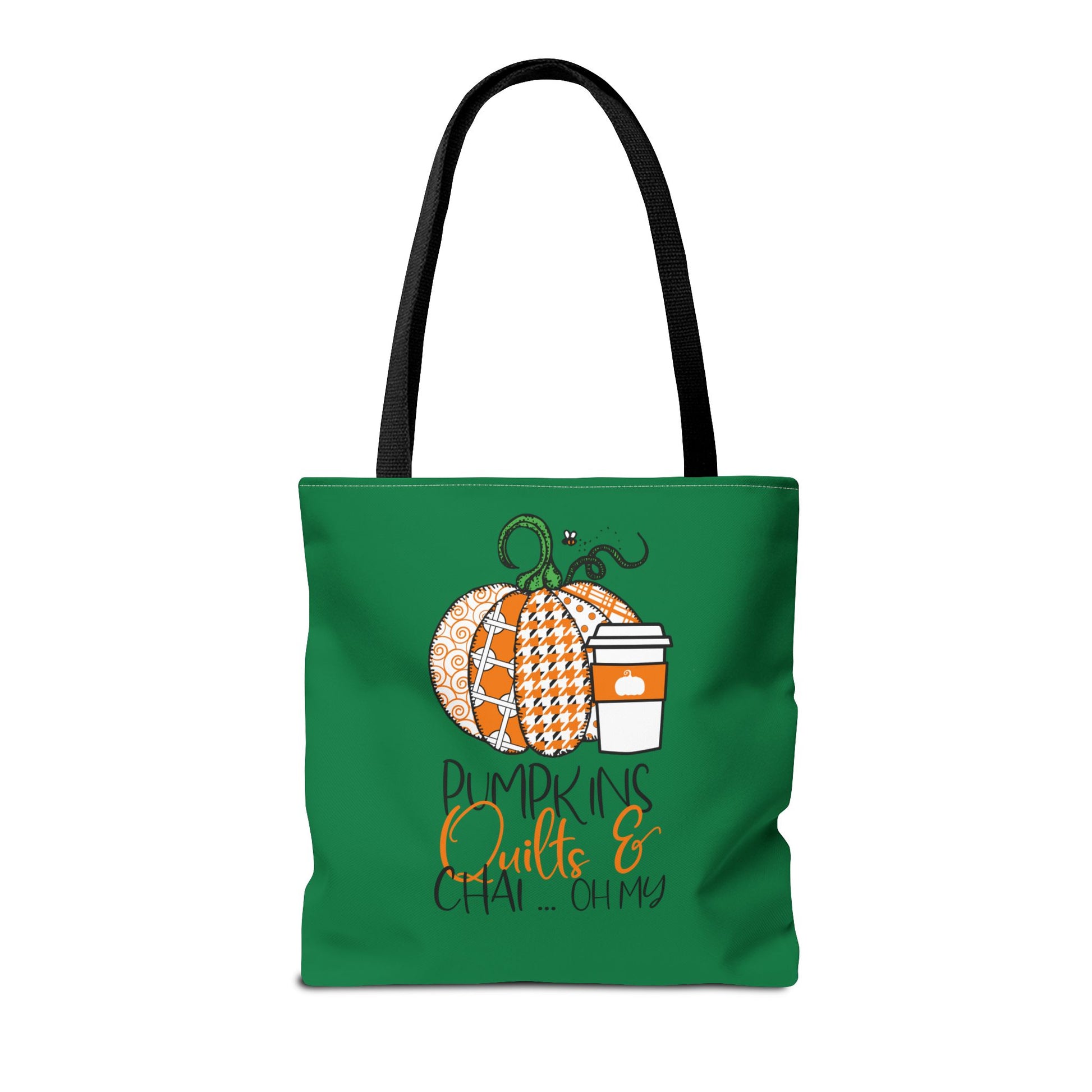 Pumpkin Spice Tote Bag, Fall Tote, Pumpkin Quilts & Chai Bag, Autumn Handbag, Eco-Friendly Market Bag