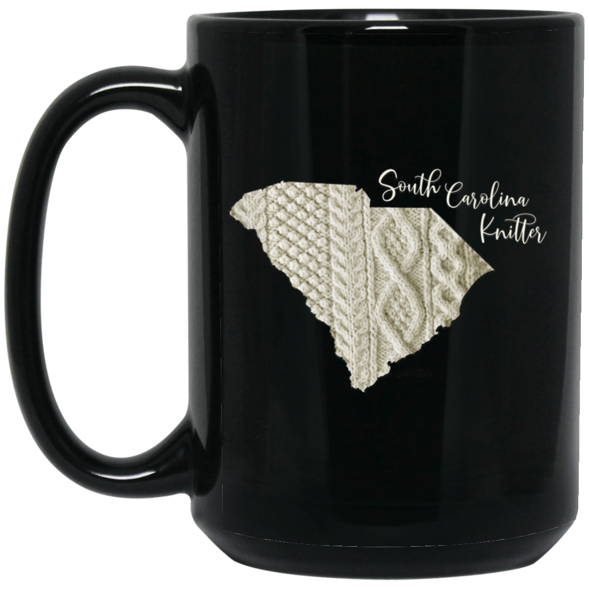Featuring a vintage Irish knit sweater design in the shape of the state of South Carolina, this mug also makes a great gift for your knitting family and friends.