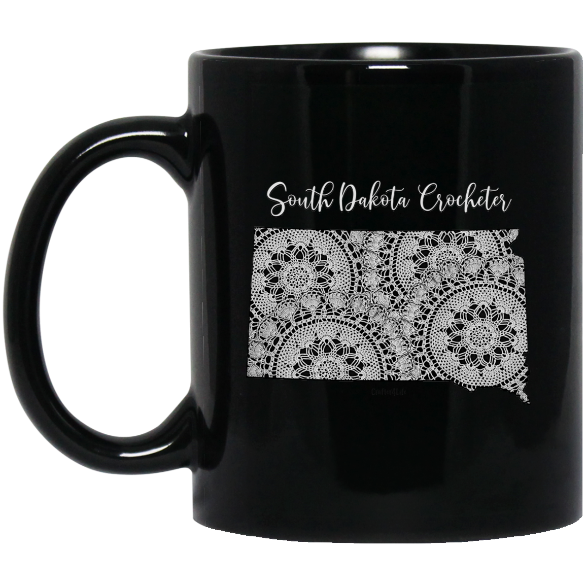 Featuring a vintage doily pattern design in the shape of the state of South Dakota, this mug also makes a great gift for your crocheting family and friends.