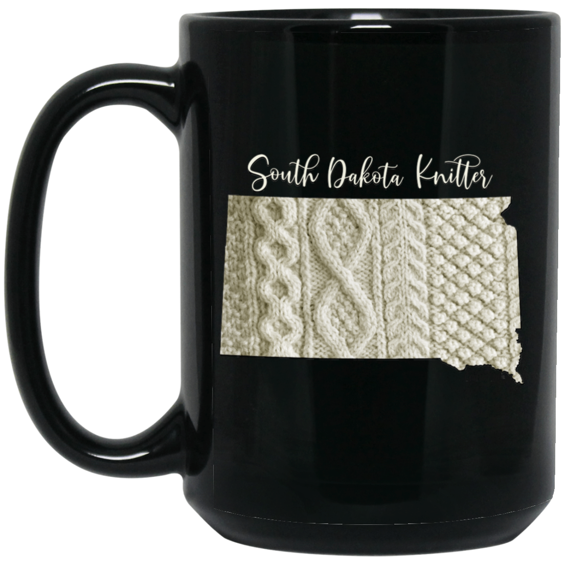 Featuring a vintage Irish knit sweater design in the shape of the state of South Dakota, this mug also makes a great gift for your knitting family and friends.