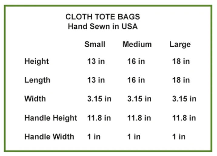 Our quality crafted tote bags are hand sewn in America using durable, yet lightweight spun polyester fabric. All seams and stress points are double-stitched for durability. They are stylish, featuring original artwork on both sides and a sturdy 1” wide cotton webbing strap for maximum shoulder comfort.