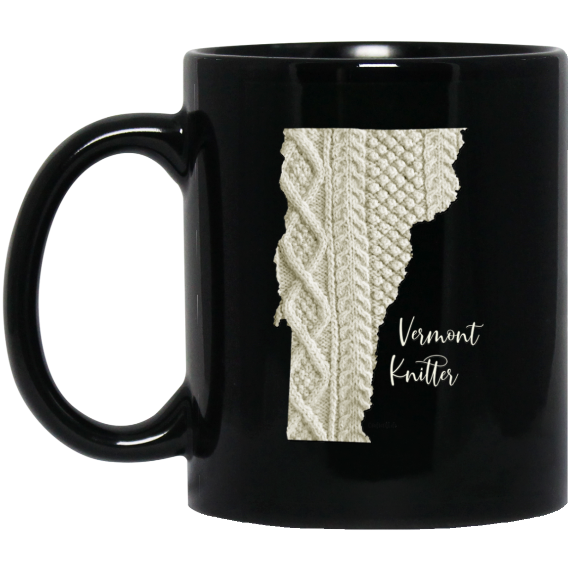 Featuring a vintage Irish knit sweater design in the shape of the state of Vermont, this mug also makes a great gift for your knitting family and friends.