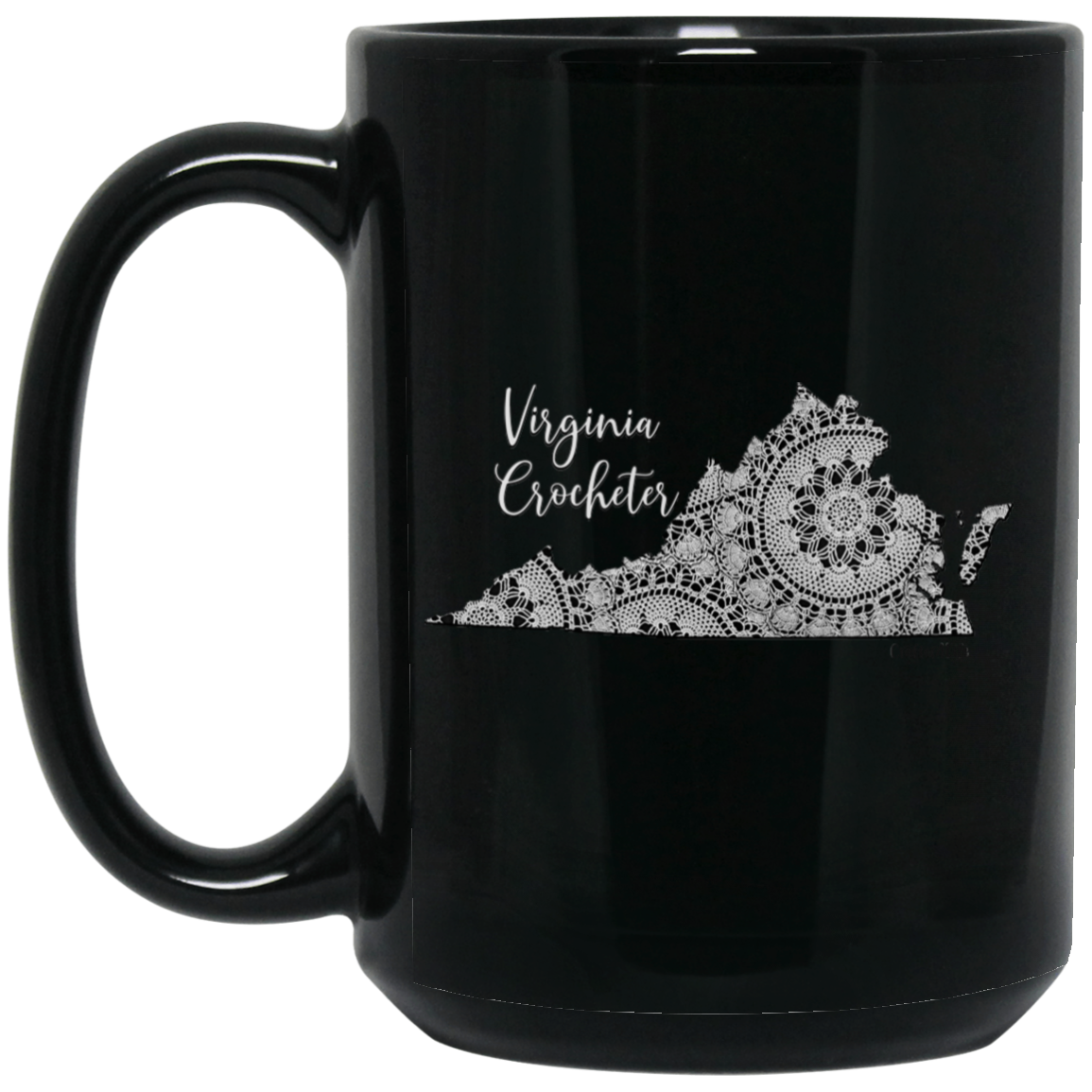Featuring a vintage doily pattern design in the shape of the state of Virginia, this mug also makes a great gift for your crocheting family and friends.