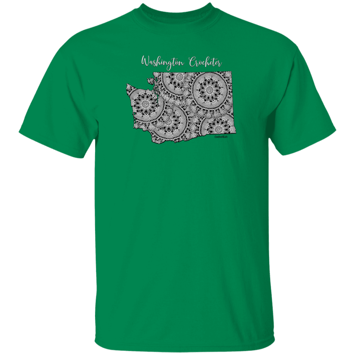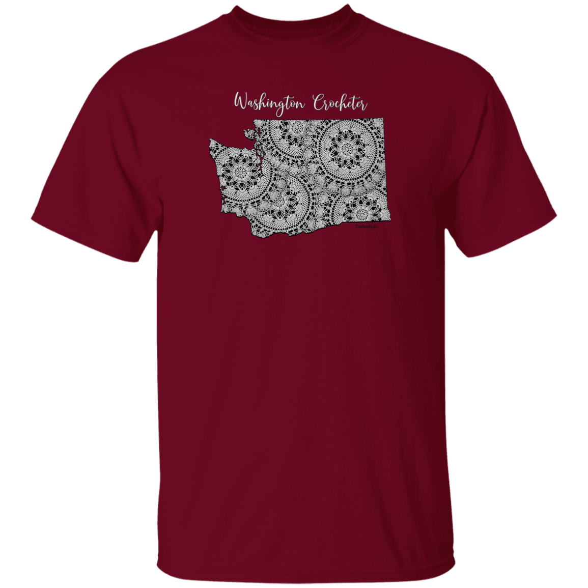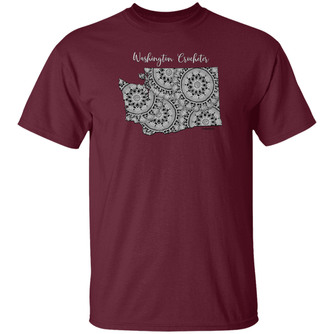Anyone from Washington who loves to crochet will love this 100% cotton t-shirt featuring a grouping of traditional doilies in the shape of the state of Washington. Great gift for crocheting friends or family ... or yourself! Sized for comfort as well as style. This will be one of your most comfortable shirts.