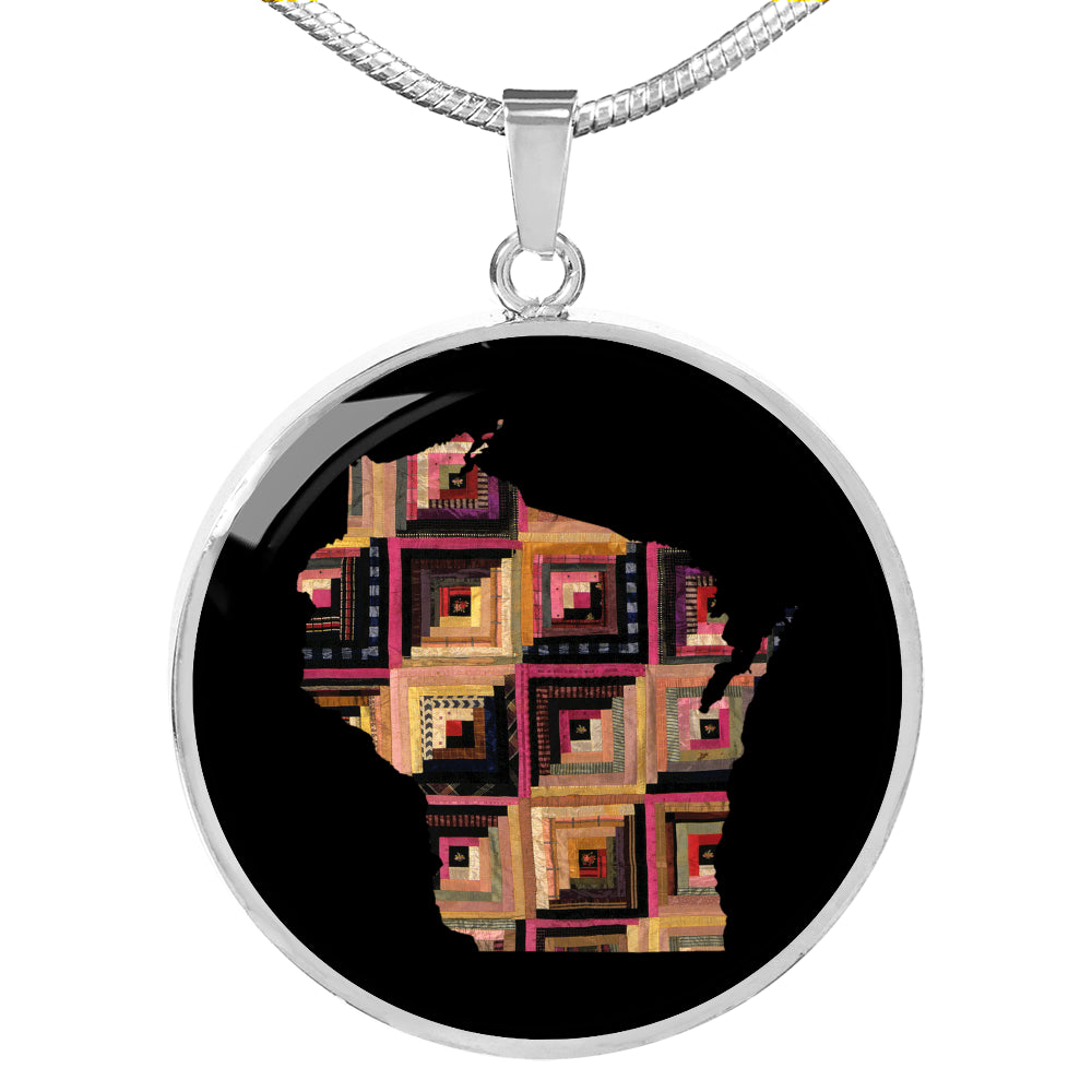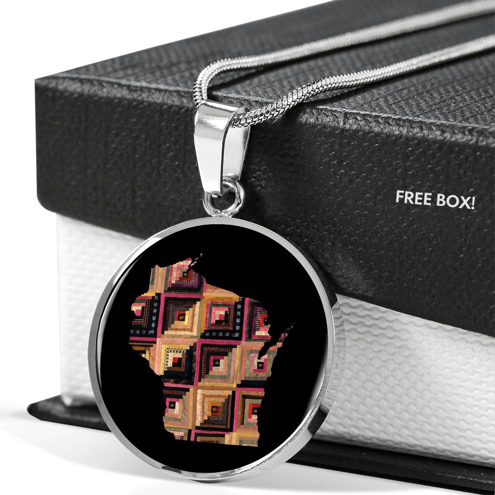 Wisconsin Quilter Pendant Necklace - Engravable Gift for Grandma, Mom, Wife, Sister, Aunt, Cousin, Friend